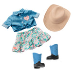 Elle rencontrera de nouveaux cousins, se fera de nouveaux amis animaux et devra également relever de nouveaux défis. Est-elle nerveuse? Pas question! Son opportunité est enfin arrivée, et rien ne se mettra en travers de son chemin - ni une oie méchante, ni un cheval effrayé, ni un grand-père aux opinions très tranchées. Vous êtes prêts pour la balade? Lainey porte une tenue de campagne élégante comprenant un haut de style jean avec un cœur rose et des détails noués sur le devant, une jupe fleurie, un chapeau de cow-boy et des bottes d'équitation bicolores ornées de cœurs et d'étoiles.