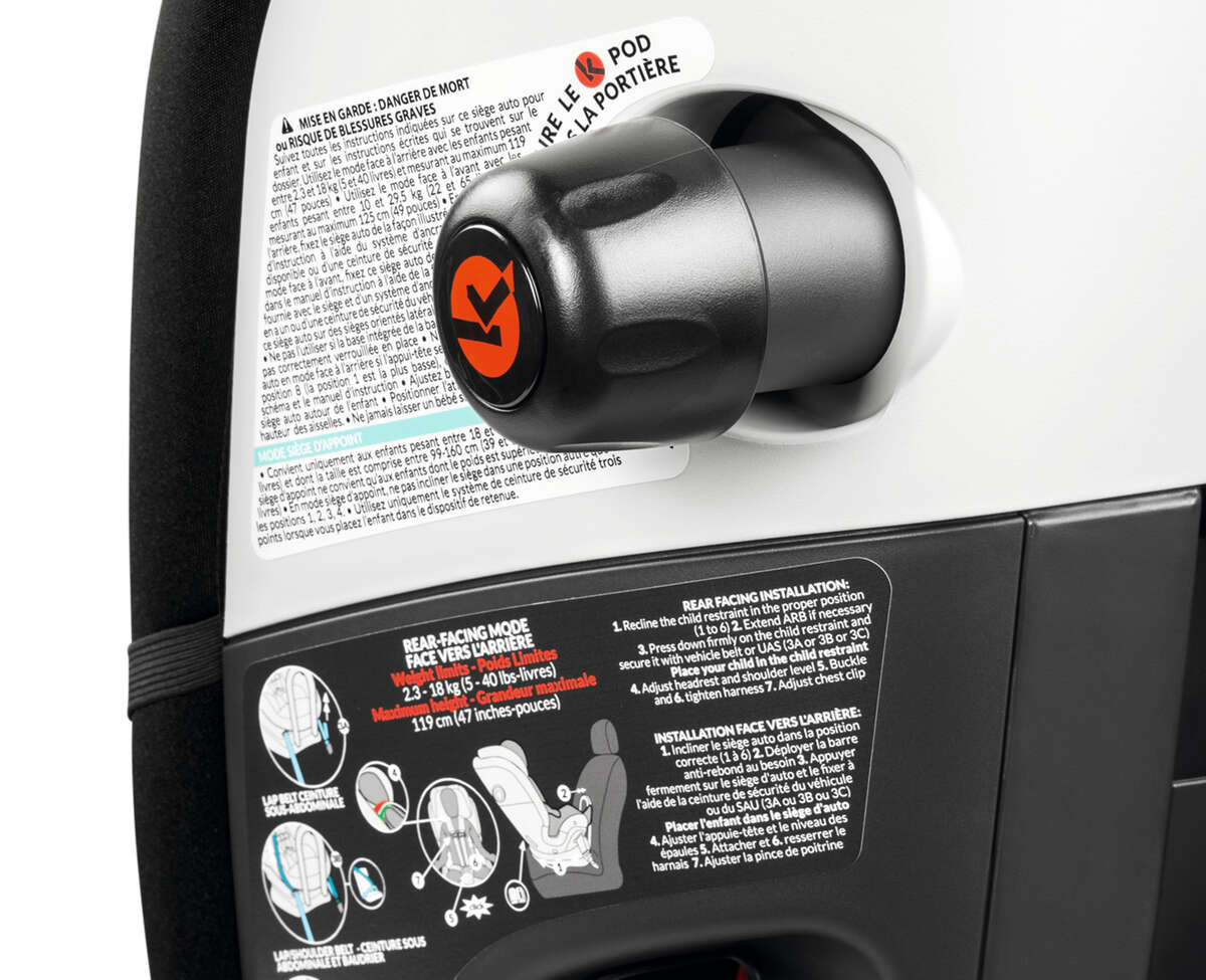 - La barre anti-rebond intégrée améliore la protection en cas de collision arrière. Il peut être rallongé de 2 pouces offrant plus d'espace pour les jambes et de confort aidant à garder votre enfant face à l'arrière plus longtemps.
