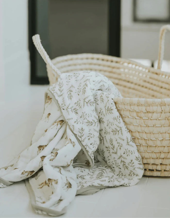 Faites de 4 épaisseurs de notre mousseline de bambou-coton dont la texture est douce comme un nuage, ces couettes moelleuses sont plus chaudes que nos mousselines régulières. En plus d’avoir des motifs uniques qui ne déteignent pas au lavage, elles s’adoucissent avec chaque lavage pour procurer plus de confort à vos minis.