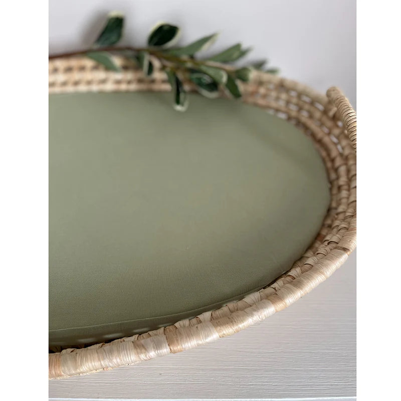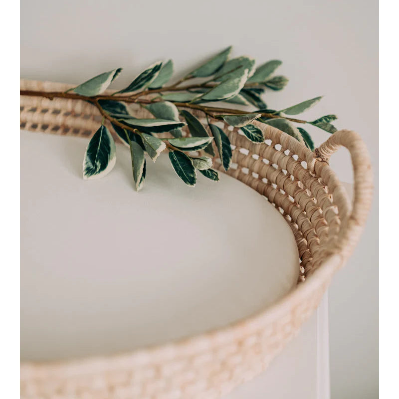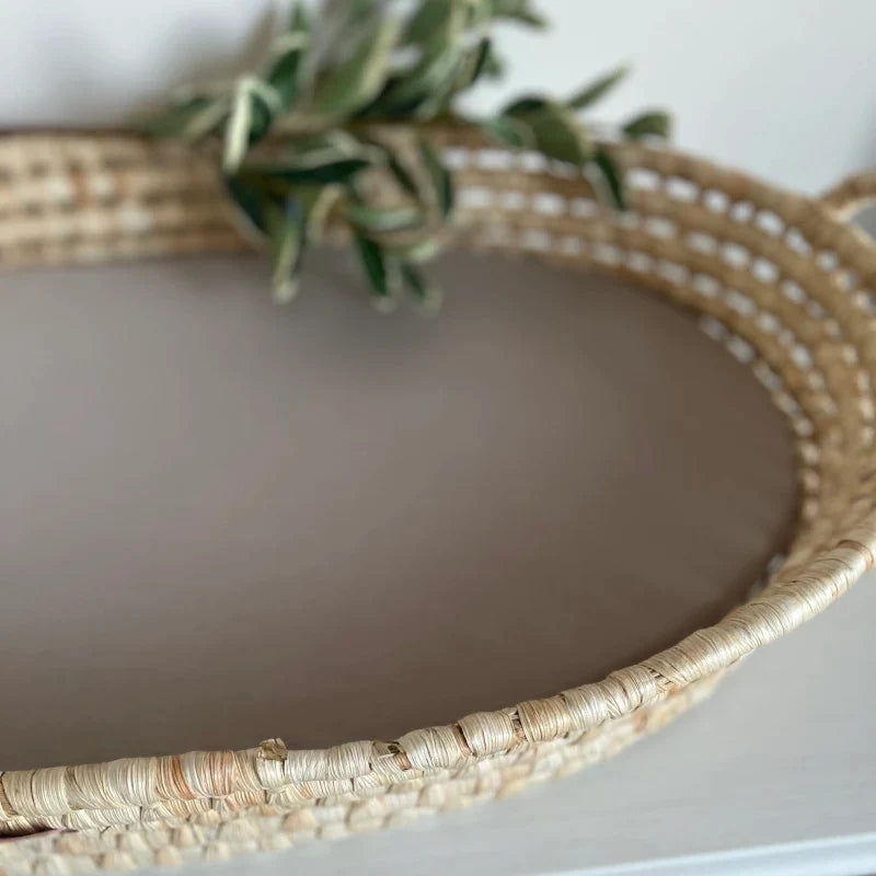 Drap-housse de couleur avoine fait de bambou et coton biologique.