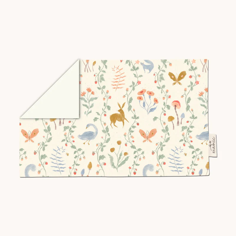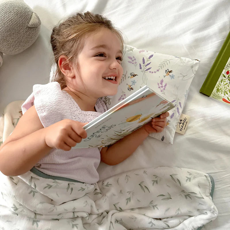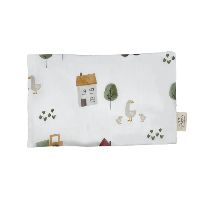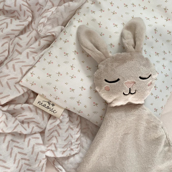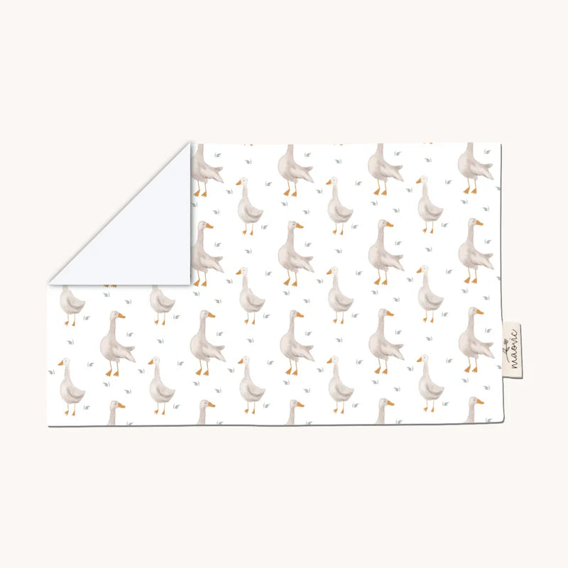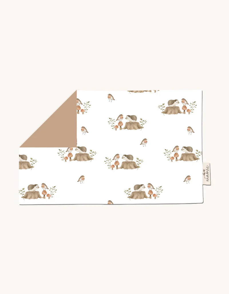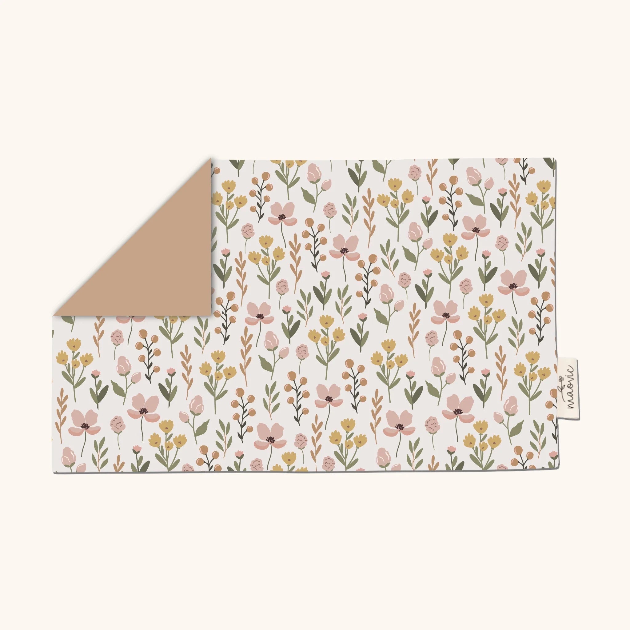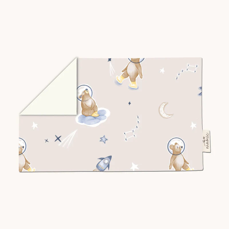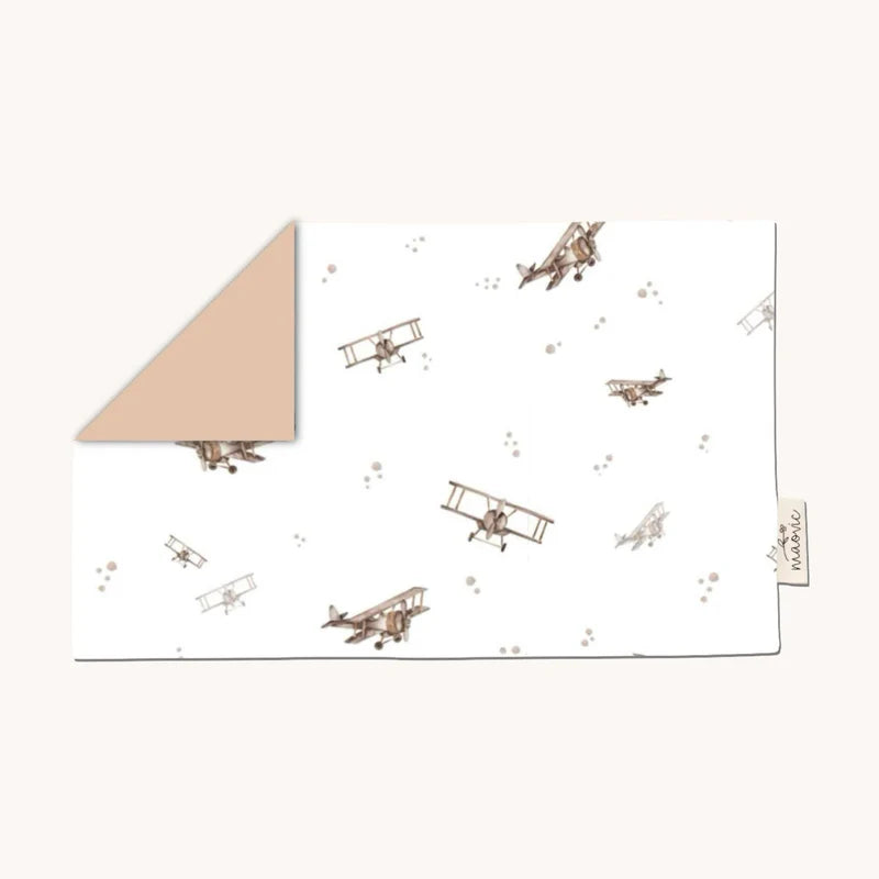 - Un côté à motif 100% coton et un côté uni d’une couleur agencée en poly coton;