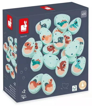 Voilà un jeu de memory d'un style tout à fait original ! Ces 20 œufs de dinosaures en bois cachent de jolis bébés à la recherche de leur jumeau ! Idéal pour les enfants à partir de 2 ans, ce Mémo Dino va ravir petits et grands car il n'y a pas d'âge pour s'amuser et exercer sa mémoire ! Cet indémodable jeu est composé de 20 œufs en bois illustrés avec de beaux bébés dinos. Chacun son tour, on retourne les œufs un à un afin d’en retrouver deux identiques. Celui qui en a trouvé le plus a gagné ! Jouet fabriqué en bois FSC®.
