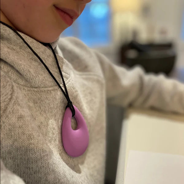 Votre enfant a un besoin intense de mâchouiller? Vous cherchez un outil discret afin de répondre à ce besoin? Le collier mâchouille pendentif est résistant et offre une grande superficie à mâchouiller.