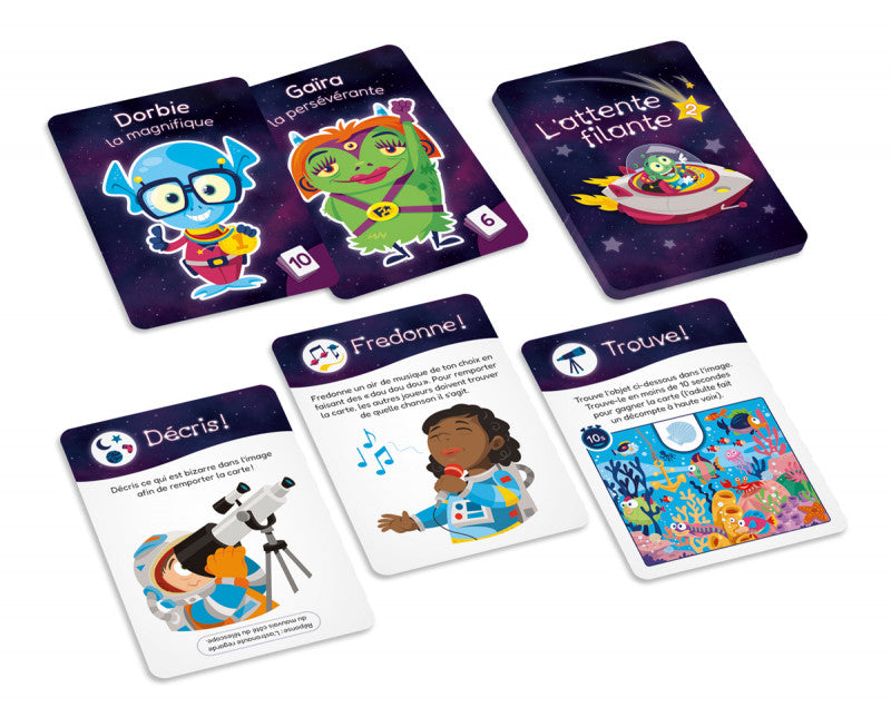 L’attente filante 2 est un jeu de cartes destiné aux enfants de 5 à 8 ans dans lequel les joueurs doivent réaliser toutes sortes de défis ludiques sollicitant des habiletés variées. Le jeu a été pensé pour transformer les situations d’attente en moments amusants!