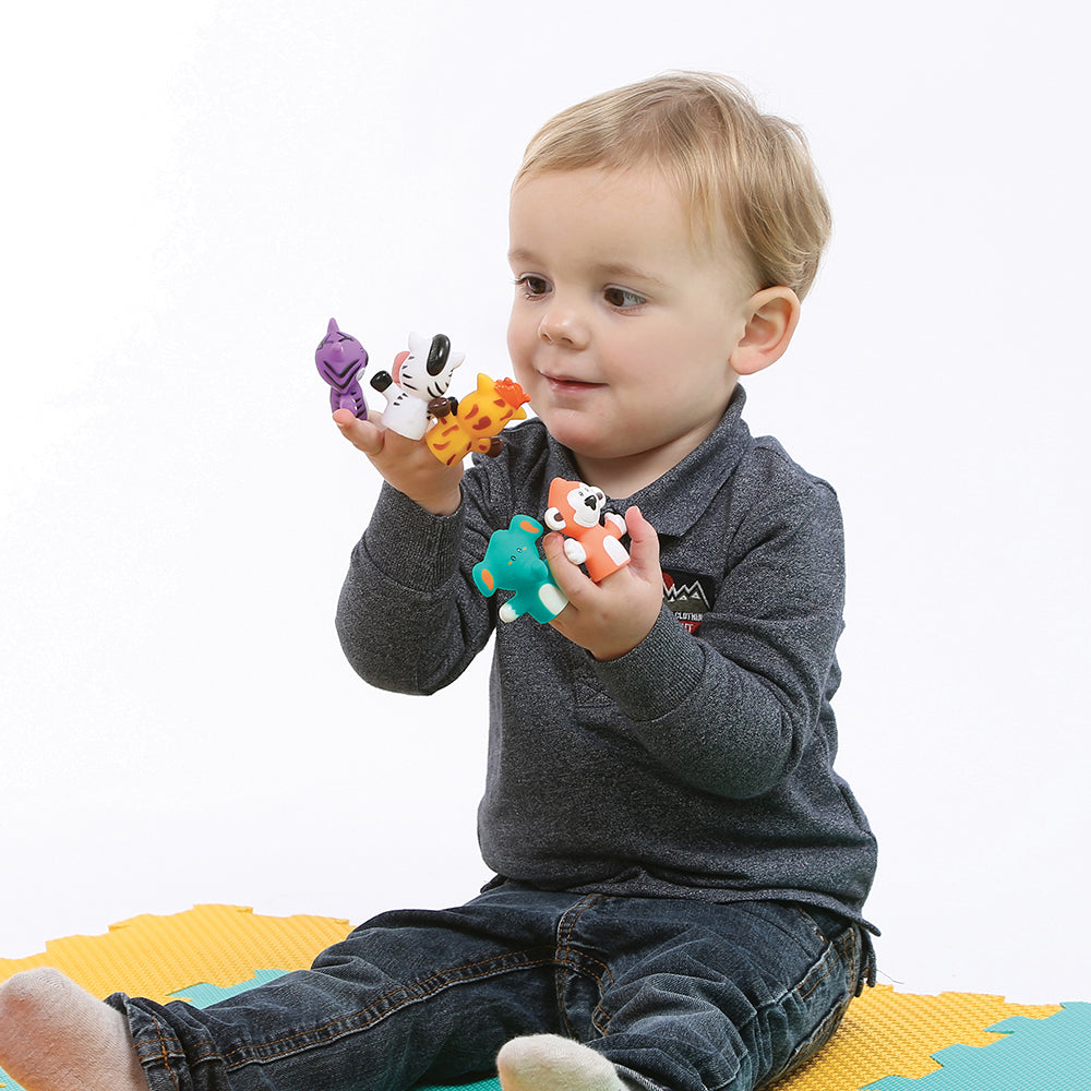Ces jolis animaux, au design rigolo, sont spécialement conçus pour les petites mains. Réalisés en plastique doux, hygiénique et résistant aux mordillements ainsi qu’à l’eau, les marionnettes sont parfaitement adaptées pour les enfants dès 10 mois.