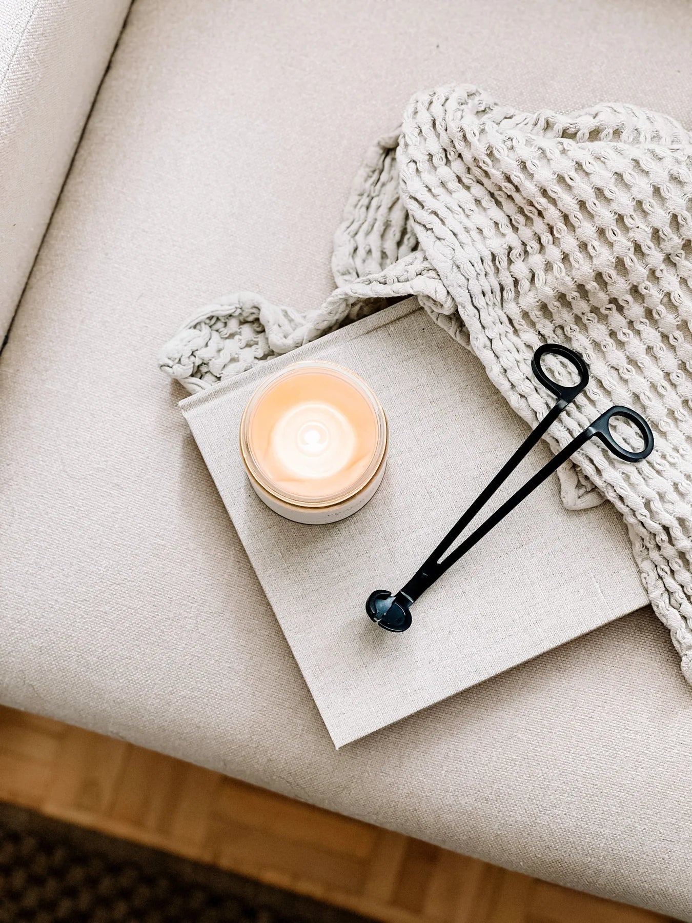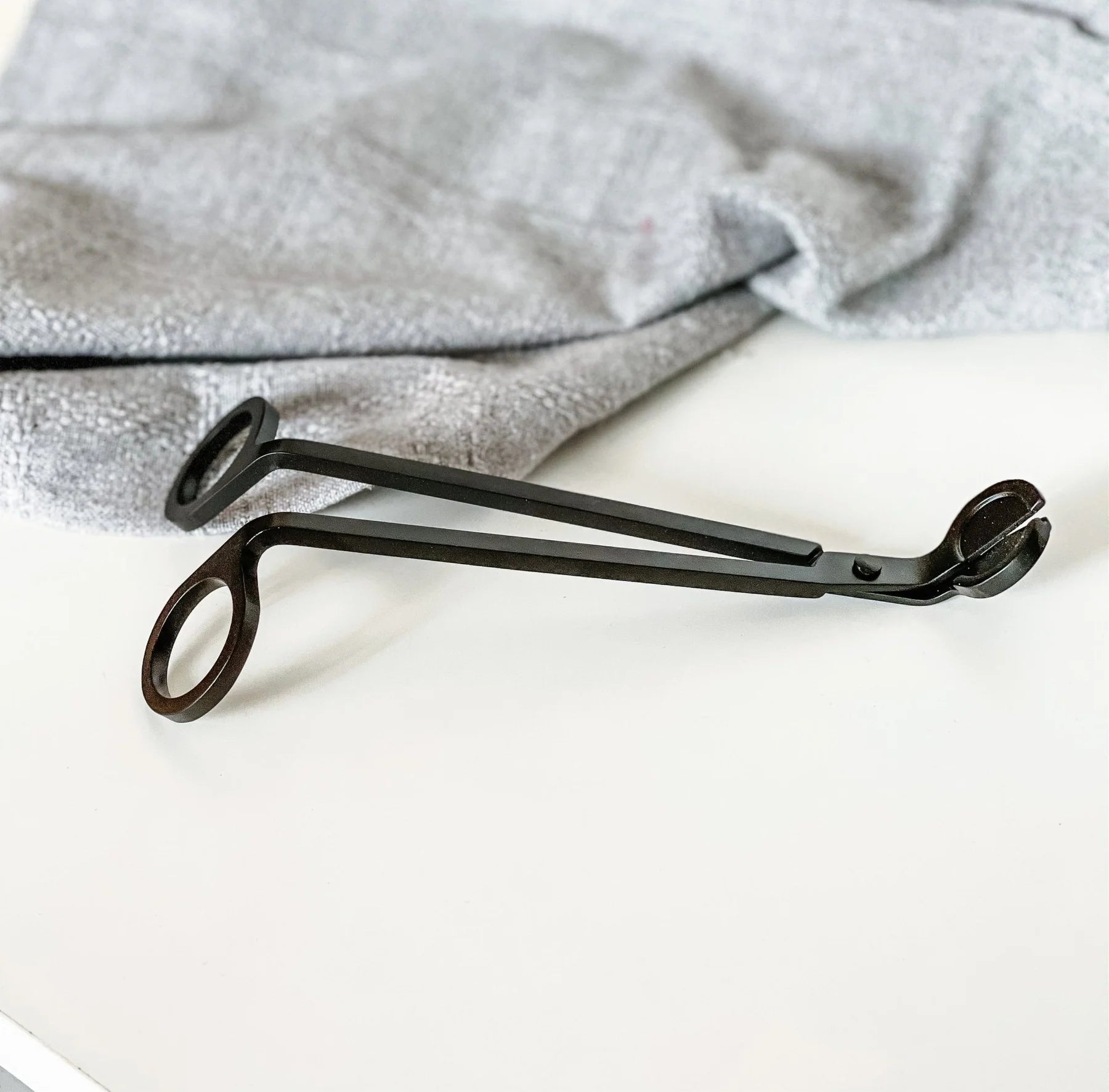 Le principe du ciseau est le même qu’un ciseau classique, mais plutôt qu’un bout pointu, son bout est courbé pour que la mèche soit coupée à la perfection. Cela permet d’éviter qu’elle ne produise de la suie et la fait brûler de façon plus égale. Lorsque la mèche est bien coupée, la flamme de la chandelle est également beaucoup plus belle (oui oui, une flamme laide ça existe!) et cela évite la formation d’un rond de suie sur le pourtour du contenant. Votre chandelle reste donc impeccable tout au long de sa durée de vie!