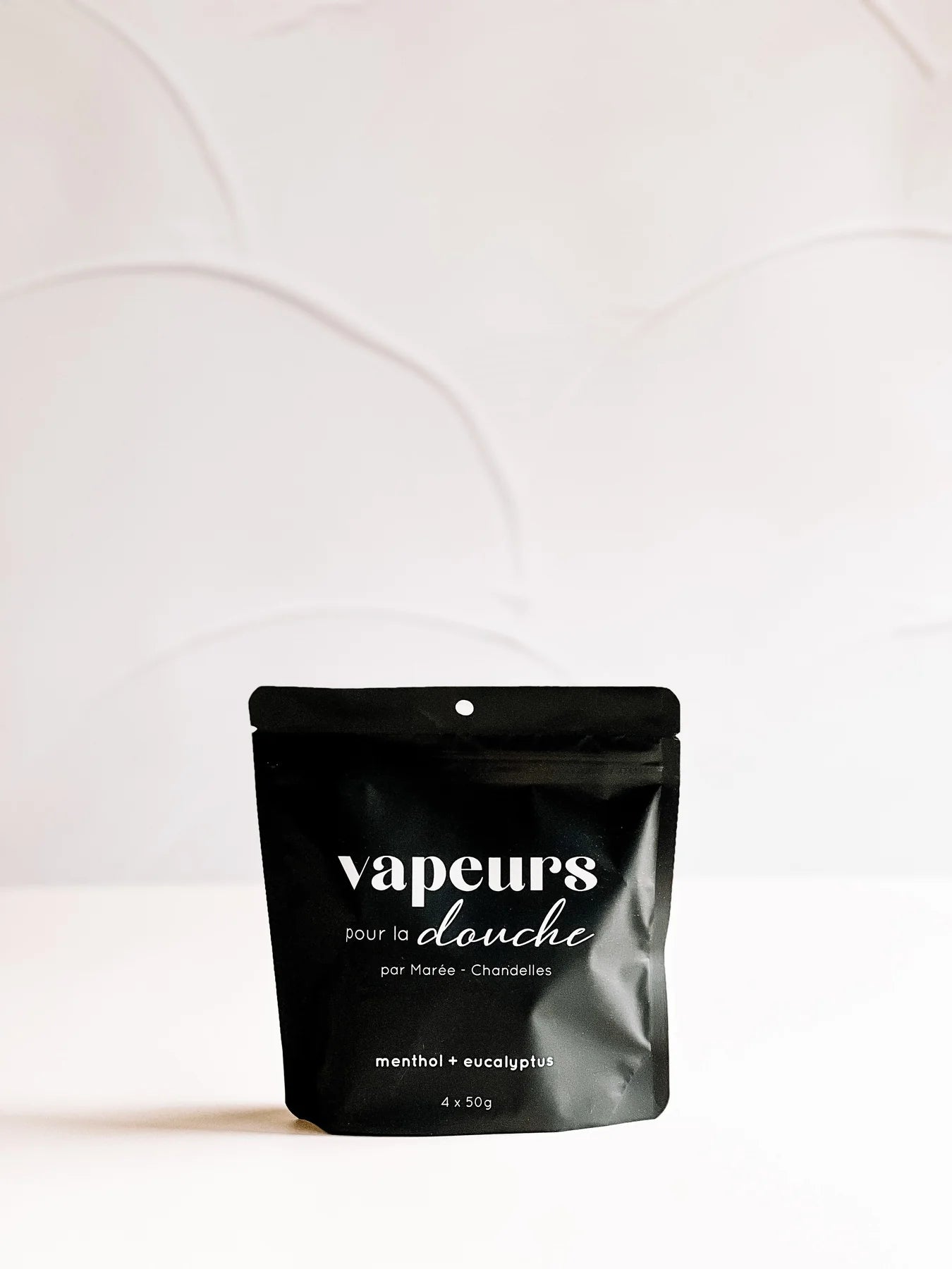 Profitez des bienfaits de l'huile essentielle d'eucalyptus et du menthol contenus dans nos vapeurs pour la douche créées au Québec dans notre atelier. Ce produit indispensable des longs mois d'hiver permet de passer un moment de détente optimal dans la douche et est aussi une excellente solution pour aider à débloquer les bronches et les nez bouchés.