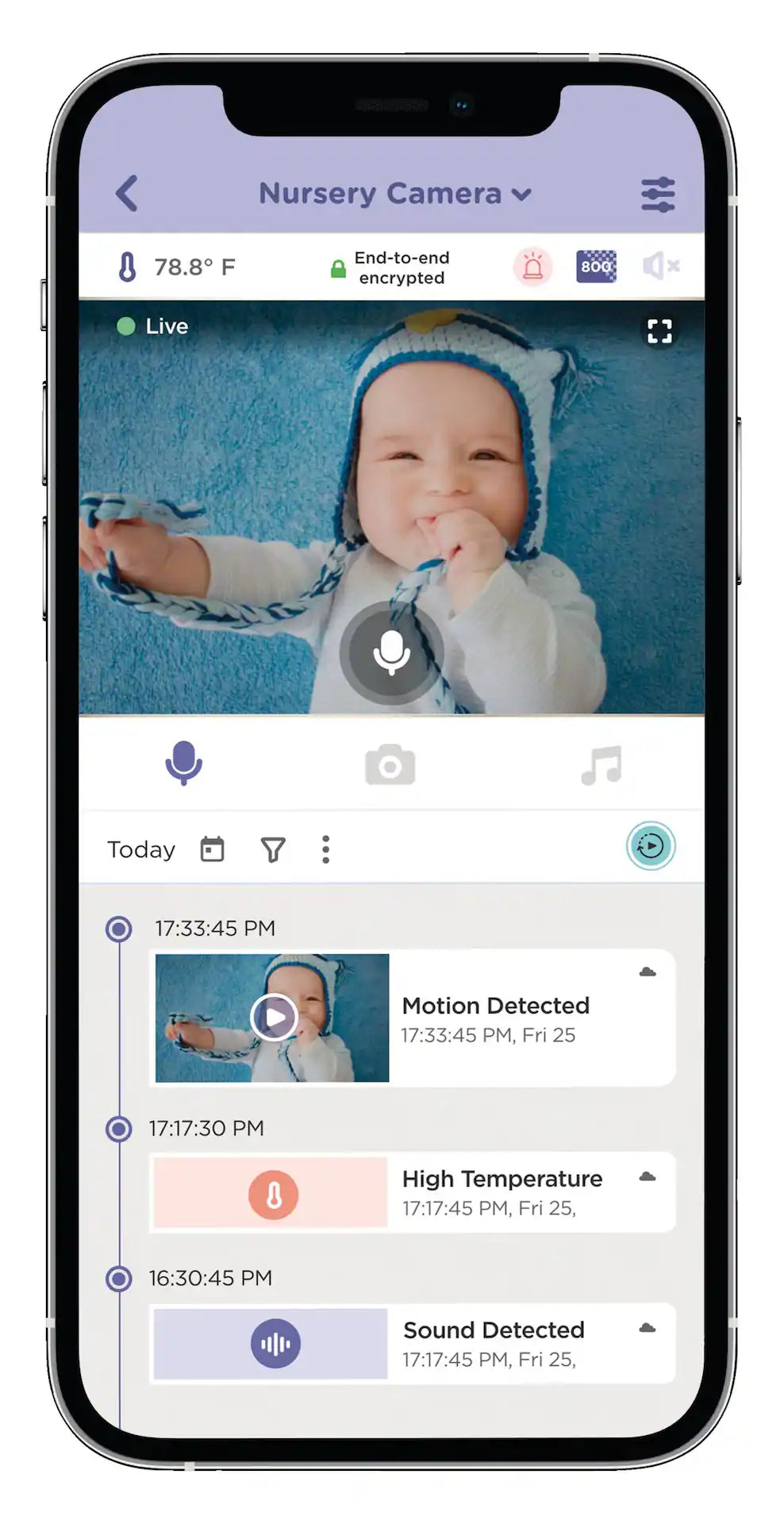 Utilisez l’appareil portatif pour parents pour apaiser votre bébé avec le son de votre voix grâce à la communication bidirectionnelle, et surveillez la météo avec le moniteur de température ambiante