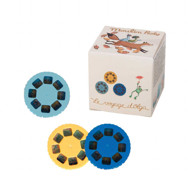 Collectionnez toutes les histoires! Retrouvez désormais des recharges de 3 disques pour lampes à histoires à choisir parmi 8 collections actuelles, et rangés dans leur adorable mini-boîte.