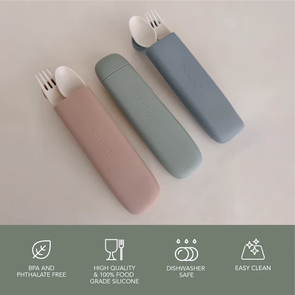 Conception pratique – Un étui de transport fin 100 % silicone qui garde les fourchettes et cuillères de votre enfant propres et faciles à transporter.