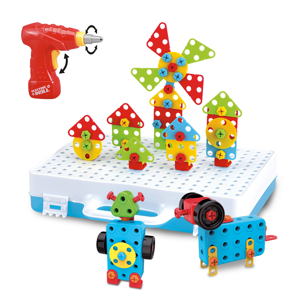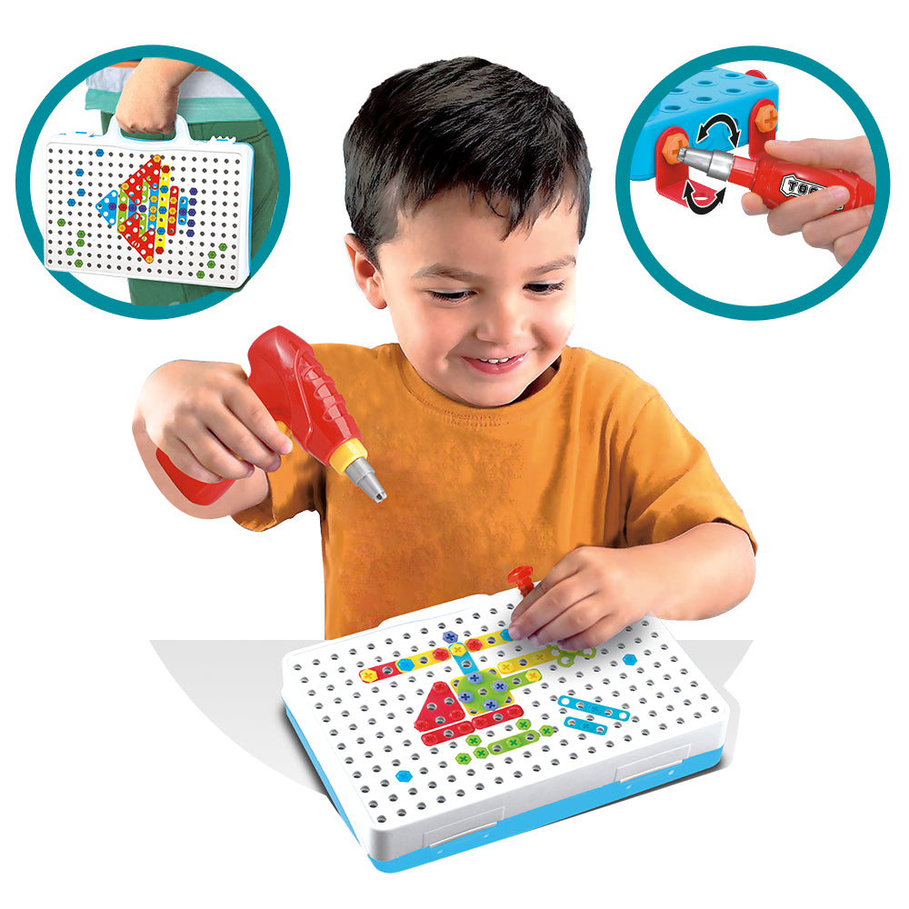 Les enfants peuvent également utiliser la perceuse à piles incluse pour différentes méthodes d'assemblage, ce qui renforce leur coordination main-œil et leur dextérité.