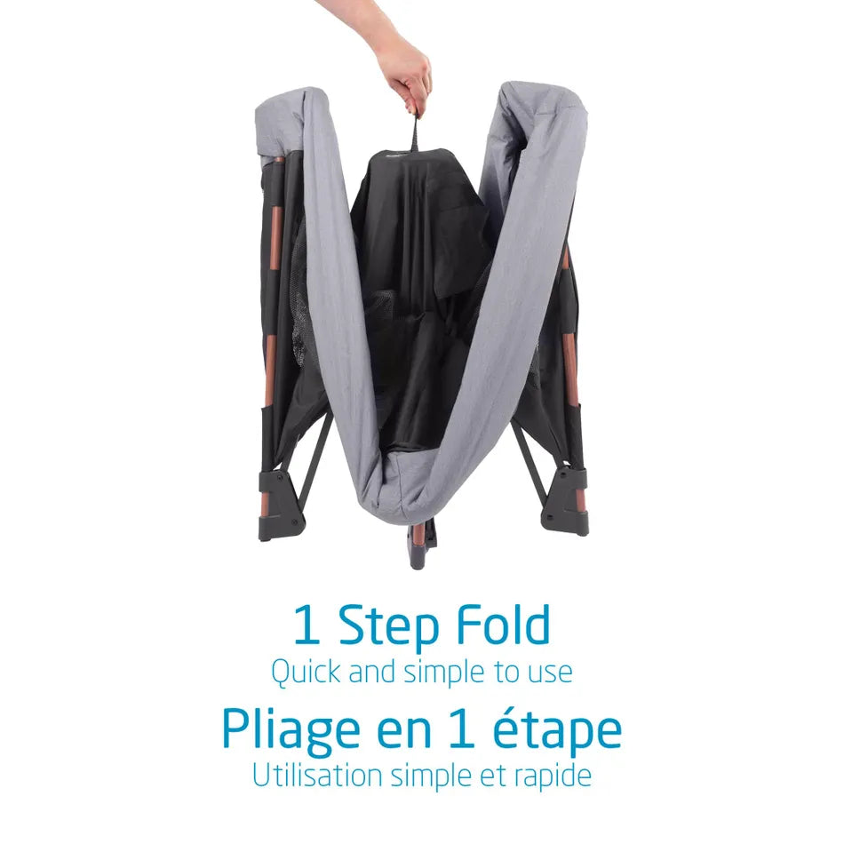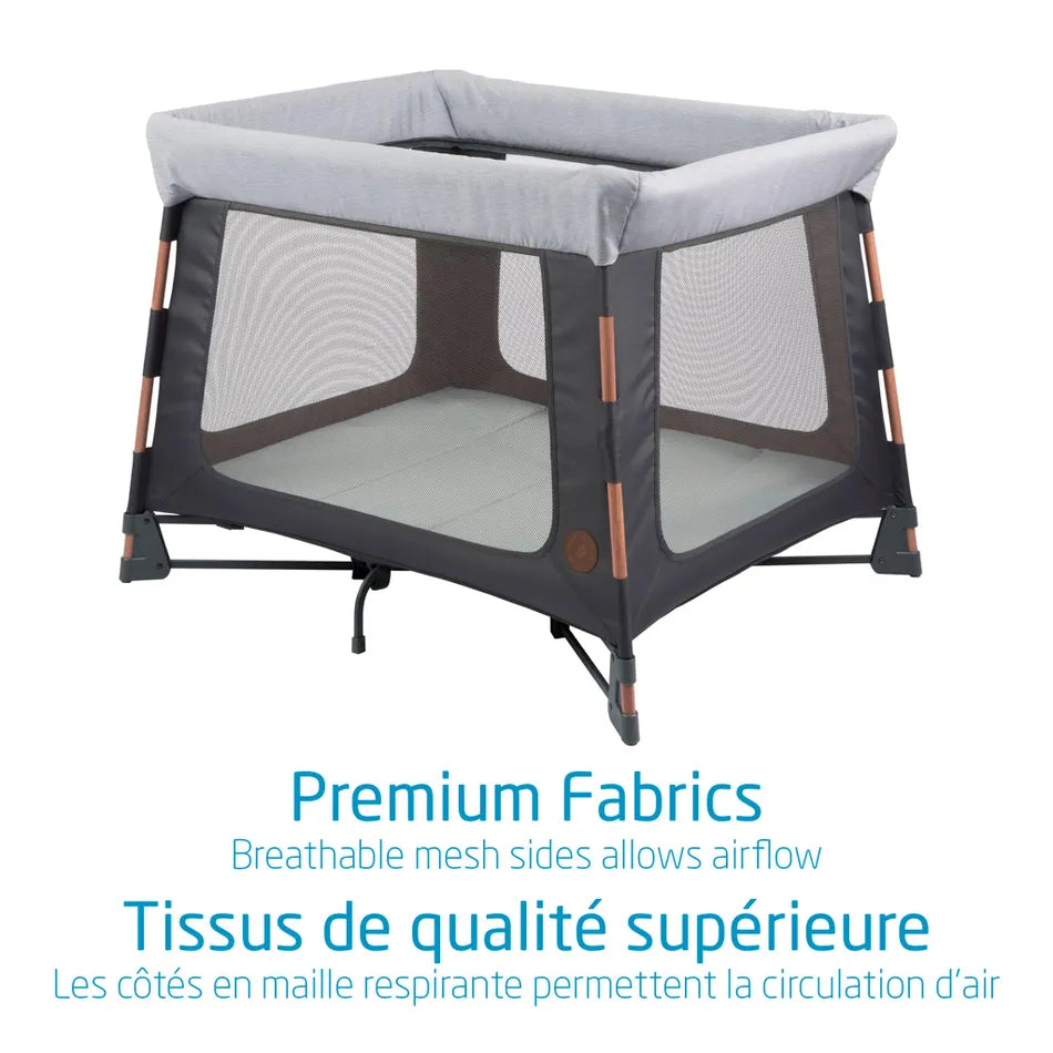 Voici le nouveau Swift. Un parc de voyage 3-en-1 polyvalent et élégant qui peut être utilisé comme un couffin pour nouveau-né, un espace pour la sieste des tout-petits (sous surveillance) et un parc de jeu sûr et robuste, du nouveau-né au tout-petit. Avec un poids d'environ 18 livres, c'est le plus léger de sa catégorie. Pliable en un clin d'œil, le Swift est le parc de voyage le plus rapide à monter, à descendre et à remonter, à la maison ou en voyage.