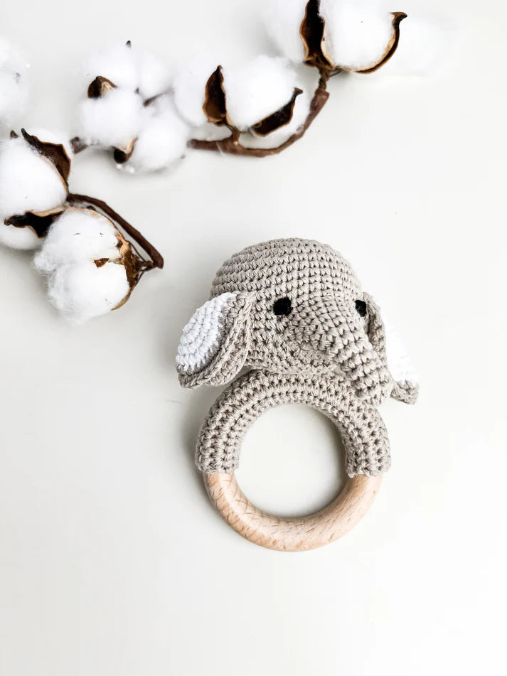 Offrez à votre bébé des heures de jeu et d'exploration en toute sécurité avec ce hochet en bois et au crochet, alliant charme artisanal et qualité sensorielle.