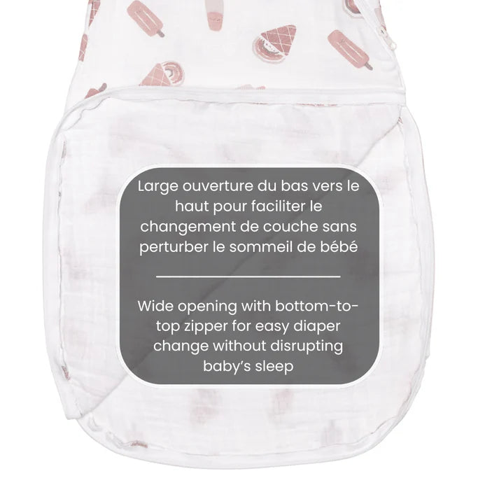 Cette dormeuse 0.7 TOG en mousseline 100% coton est fabriquée à partir d’un tissu respirant, doux et léger pour la peau de bébé. Elle deviendra votre meilleure alliée lors des températures plus chaudes ou températures modérées avec des vêtements de nuit appropriés.