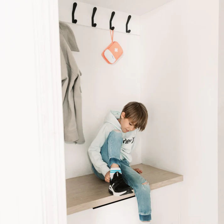 La petite trousse parfaite pour traiter les blessures mineures du quotidien lors de vos sorties. Elle contient les essentiels du premier soin et son format est idéal pour la glisser dans le sac à couches, dans le sac de randonné, dans le coffre à gant de la voiture ou même, dans le sac à dos de votre enfant. Emmenez-la partout avec vous !