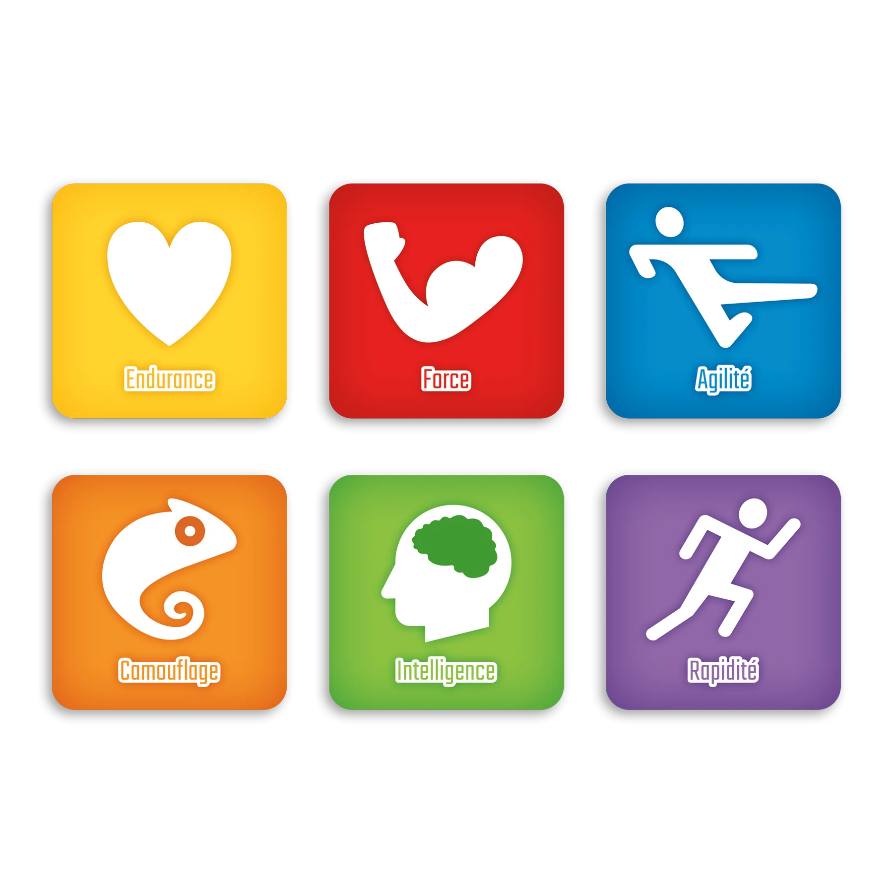 Que la partie commence! Repère les couleurs dominantes et fais évoluer ton personnage en acquérant différentes habiletés.