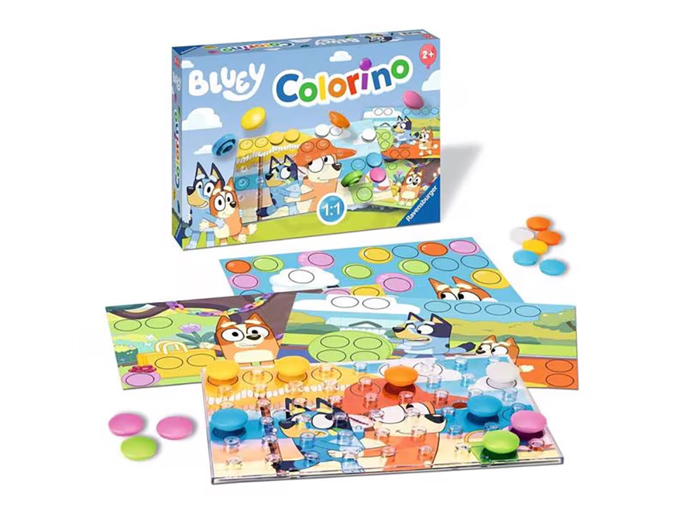 Avec Ravensburger Colorino Bluey, les tout-petits apprennent à reconnaître et associer les couleurs en s’amusant ! Ce jeu comprend 4 planches recto verso avec des illustrations colorées et en noir et blanc à compléter avec de grands jetons faciles à manipuler. En plus de découvrir les couleurs, les enfants développent leur motricité fine et leur sens de l’observation.