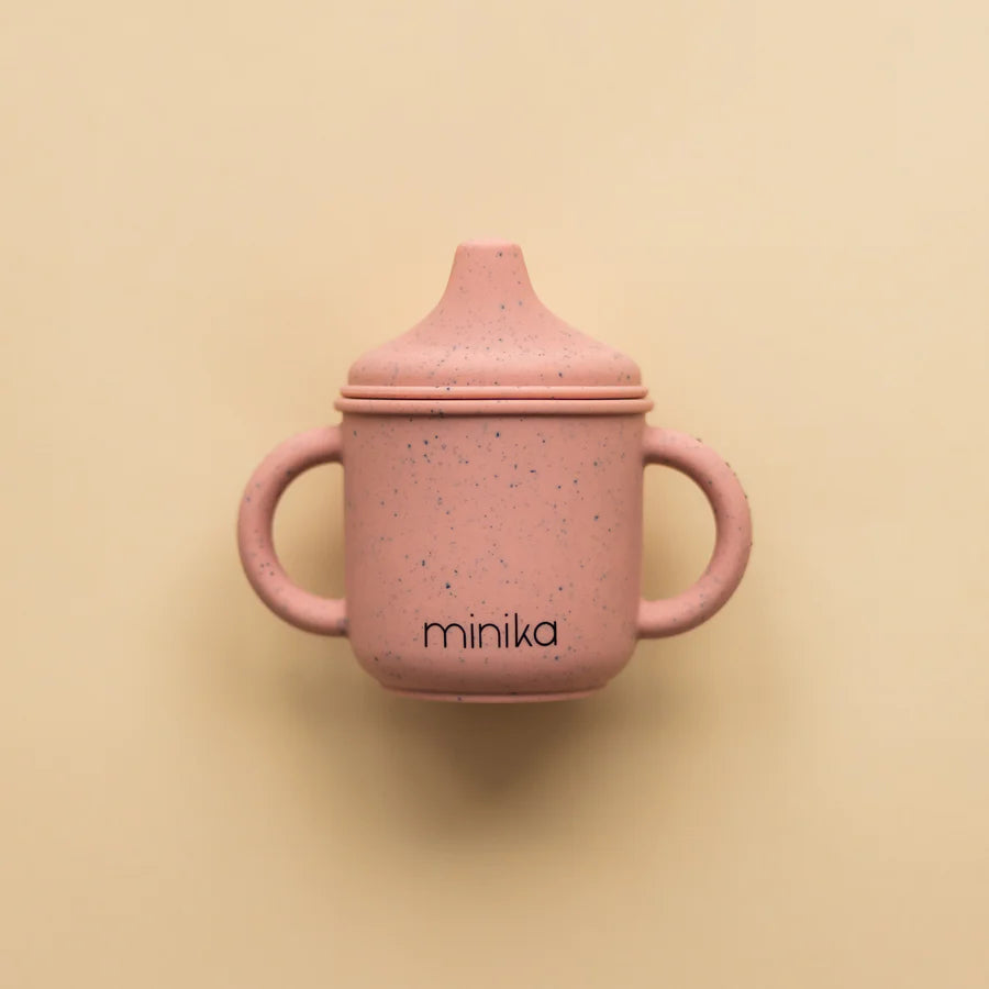 Verre à bec avec poignées. Petit format idéal pour les petites mains. Silicone alimentaire sans BPA. Laver avec du savon et un chiffon mouillé ou au lave-vaisselle. Allant au micro-ondes et au congélateur.