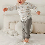 Enveloppe ton petit trésor dans le confort de notre pyjama en bambou, conçu pour offrir douceur et tranquillité d'esprit au quotidien. Fait d'un mélange de viscose de bambou et de coton, ce pyjama est idéal pour les bébés à la peau sensible, offrant des propriétés antibactériennes naturelles et une douceur incomparable. Conçu au Canada par des parents qui connaissent les réalités de la vie familiale, cet ensemble assure le confort de ton enfant peu importe la saison. Un choix parfait pour la nuit comme pour le jeu, ce pyjama est un indispensable dans la garde-robe de bébé.