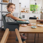 Le plateau bien conçu et parfaitement ajusté s'adapte directement au-dessus de la table pour permettre à bébé de vous rejoindre pour le repas