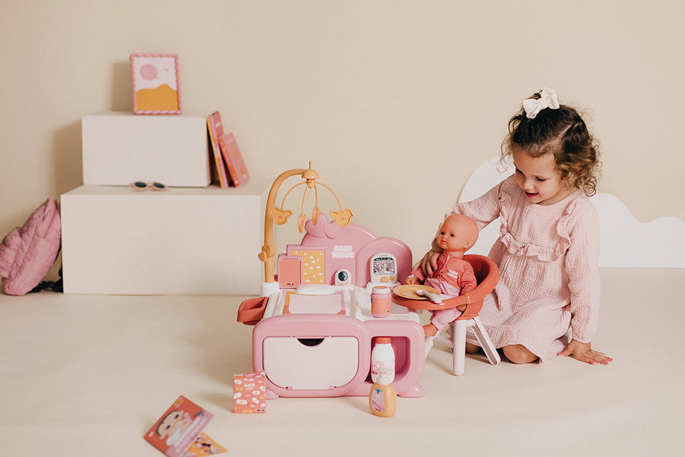 Prends soin de ton bébé dans cette pouponnière, soigne-le grâce aux nombreux accessoires et au livret éducatif !