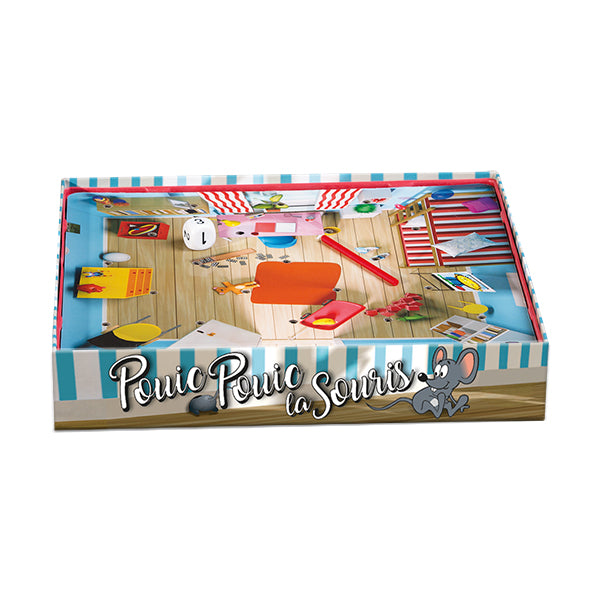 Sauras-tu trouver la souris ? Zut alors ! Une petite souris coquine s’est faufilée dans la maison et s’est bien cachée. Elle est peut-être sous le bureau ? Ou alors elle s’est cachée derrière le cadre sur la bibliothèque ? Qui se souviendra des endroits déjà inspectés et sera le premier à déceler sa cachette ? Dès que le bon trou de la souris a été trouvé, on entend un petit couinement ! 2 à 4 joueurs.