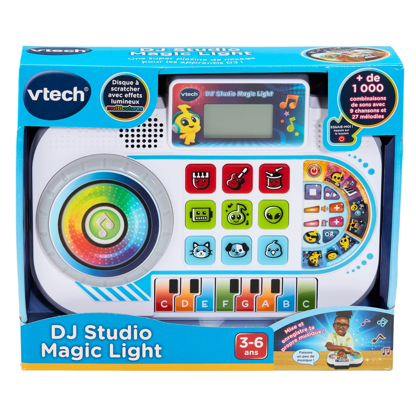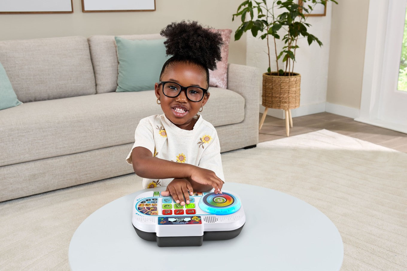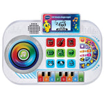 Explorez votre créativité avec vos amis musicaux et mélangez de nouvelles chansons avec des sons d'instruments, de personnages ou d'animaux. Faites tourner le plateau tournant lumineux, jouez du piano et réglez le tempo, puis enregistrez et sauvegardez jusqu'à deux minutes de musique. Chantez avec des chansons qui renforcent les lettres, les chiffres et les couleurs dans trois styles musicaux. Formons un groupe de musique! Choisissez parmi neuf amis musiciens pour former un trio et écoutez-les jouer ensemble. Jouez à un jeu de rythme en choisissant l'un des amis et en répétant le motif à l'écran pour les voir attraper des objets. C'est l'heure du spectacle! Conçu pour les 3-6 ans.
