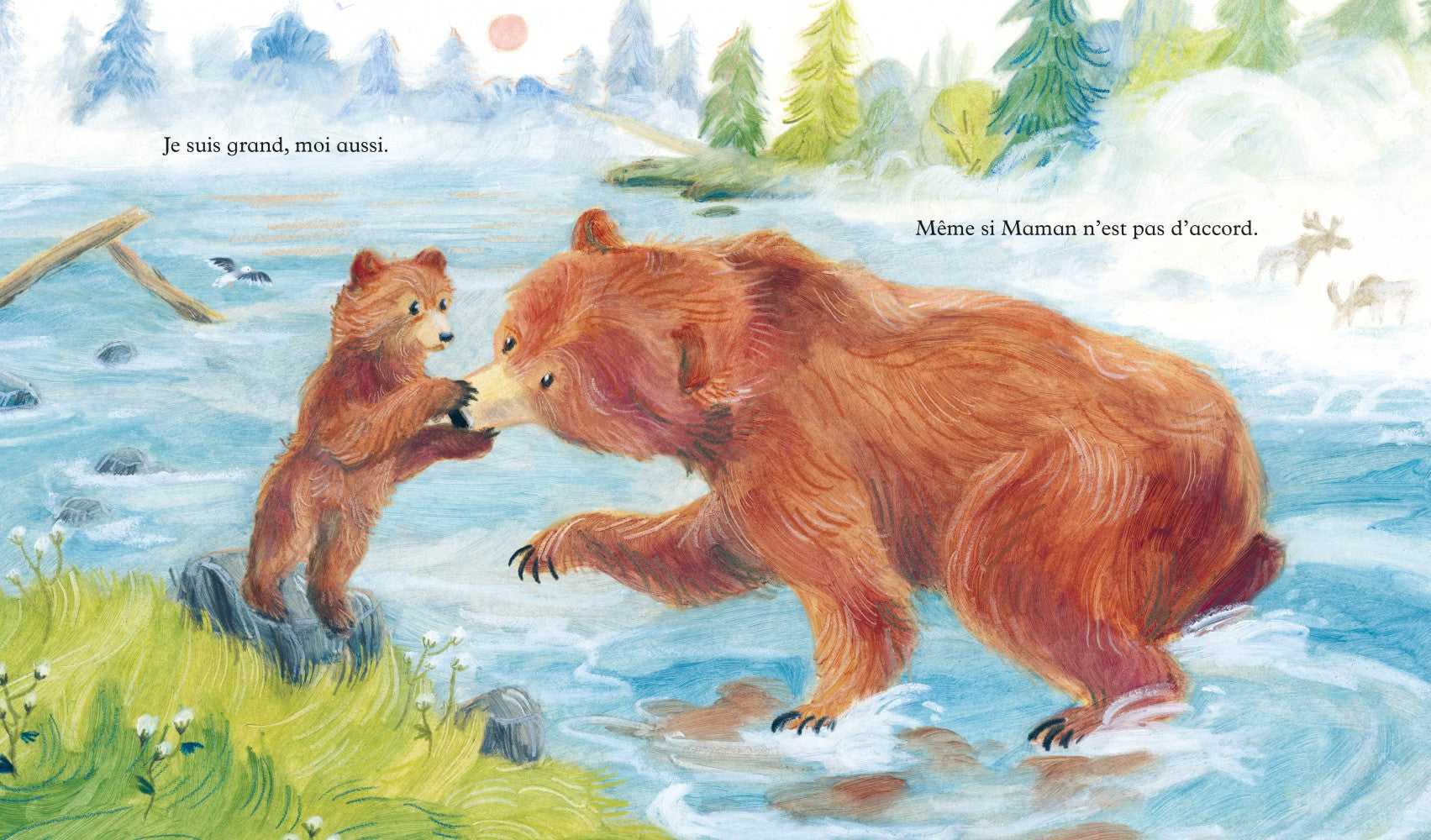 Maman est aussi forte, aussi grande et aussi belle que la rivière. Un jour, je le serai, moi aussi. Parce que, vois-tu, je marche dans ses pas. Un superbe album écrit et illustré par Sarah Noble, sur la tendresse entre une maman et son enfant, et sur la transmission des valeurs.