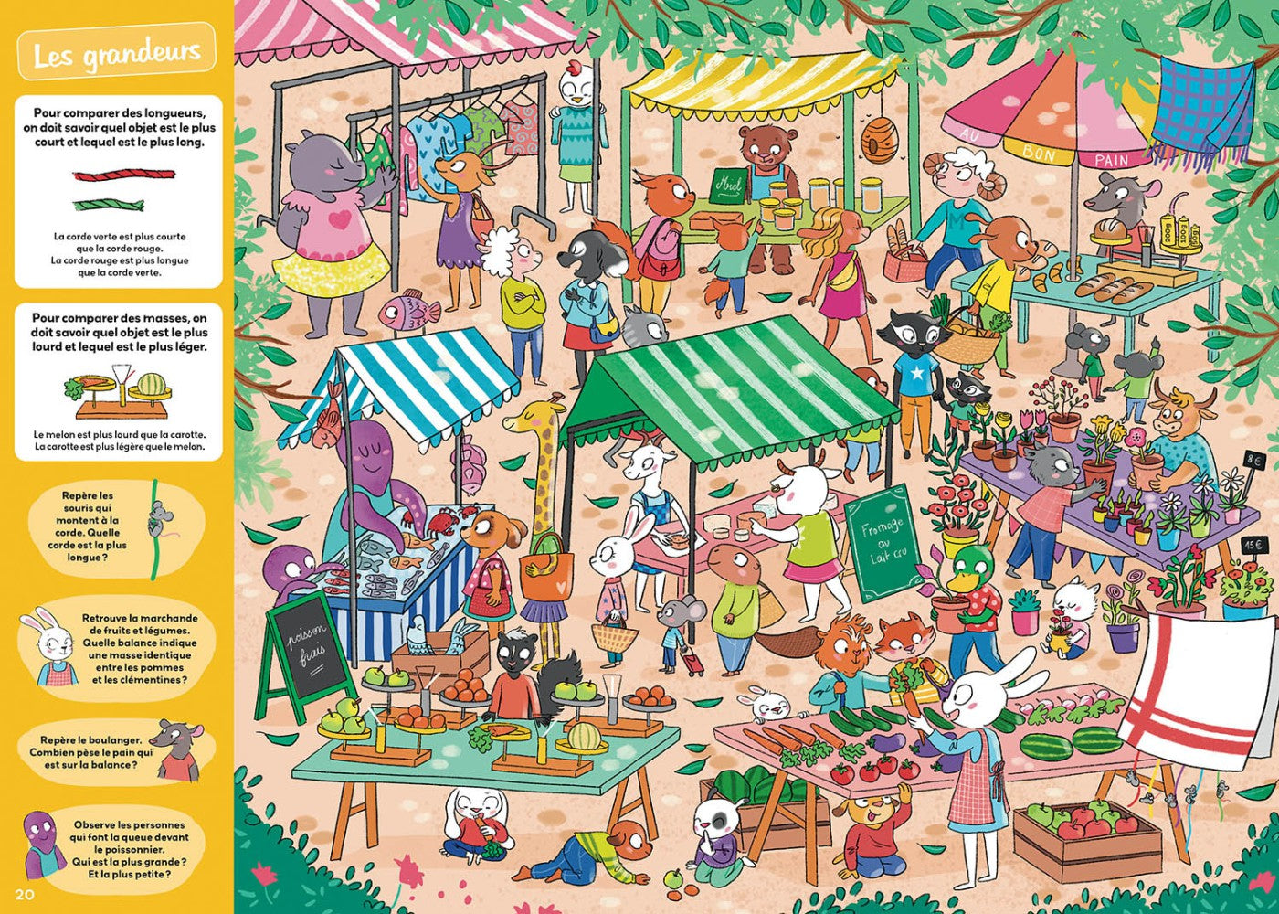 16 illustrations riches en détails et colorées pour voir et revoir les notions fondamentales de Maternelle : la lecture, les maths, la découverte du monde. Avec plus de 500 objets à trouver et tous les corrigés !