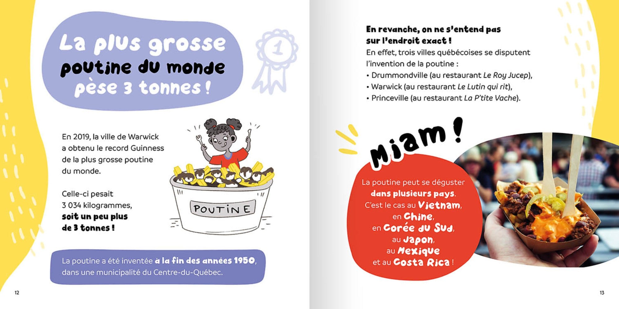 La plus grosse poutine du monde pèse 3 tonnes. On peut avoir plus de 32 dents dans la bouche. Dans ce documentaire richement illustré, tu découvriras 15 records incroyables, tous canadiens ou québécois !