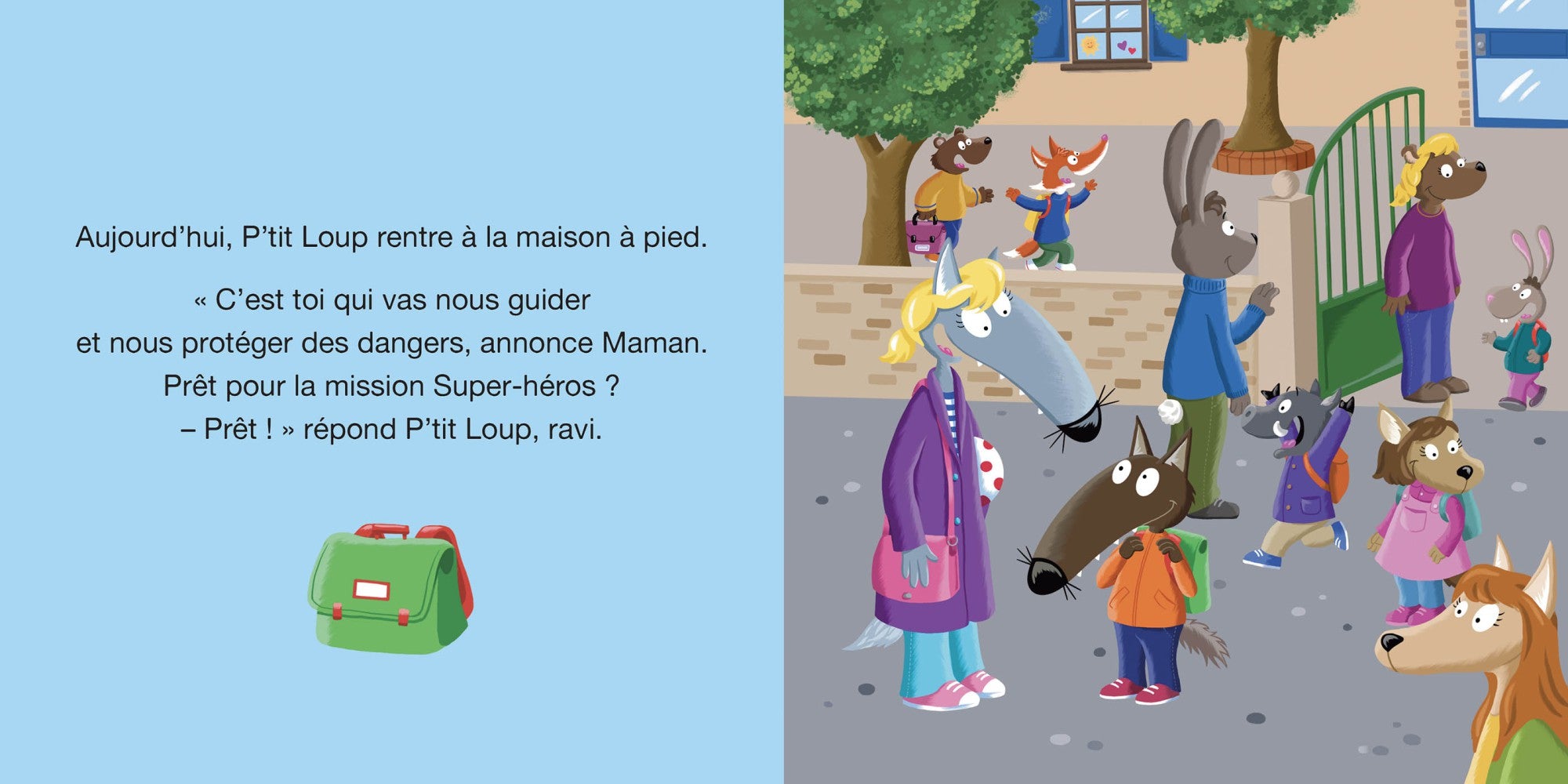 P’tit Loup rentre de l’école avec sa maman ! Il doit bien lui tenir la main, faire attention aux vélos sur la piste cyclable, et surtout attendre que le feu soit rouge pour les voitures avant de traverser ! Mais attention, il faut aussi bien regarder des deux côtés.