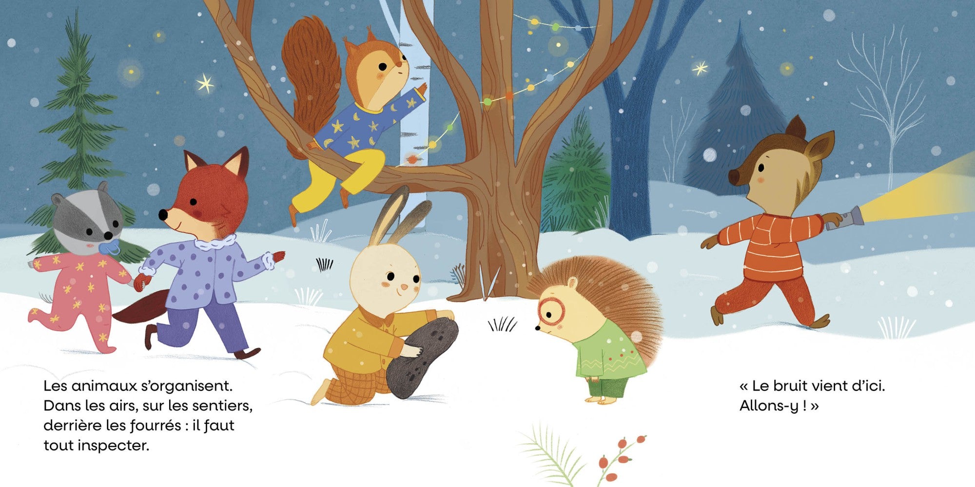 C’est la veille de Noël et tous les animaux sontau lit. Quand soudain, scrotch scrotch, undrôle de bruit résonne dans la forêt. Maisqu’est-ce que cela peut bien être?