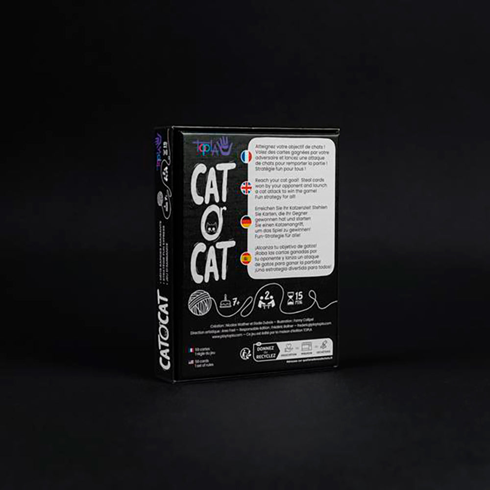 CATOrCAT est un jeu de cartes félin où la ruse prime ! À deux joueurs, collecte des cartes chats pour atteindre tes objectifs, mais attention : les chiffres au dos ne sont pas toujours ceux que tu crois. Vole les cartes gagnées par ton adversaire et déclenche une attaque féline pour remporter la victoire. Accessible à tous, ce jeu stimulant mélange plaisir, agilité mentale et rebondissements hilarants. Prépare-toi à des moments pleins de finesse et d'énergie positive !