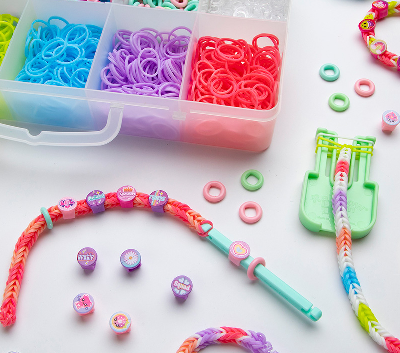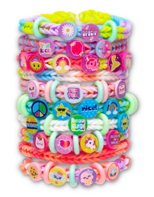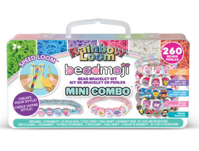 L'ensemble Mini Combo comprend 1800 élastiques, 150 Beadmojis, 10 perles d'écartement, 2 Speed Looms, 2 crochets doubles, 50 C-clips et des instructions. Créez votre propre style !