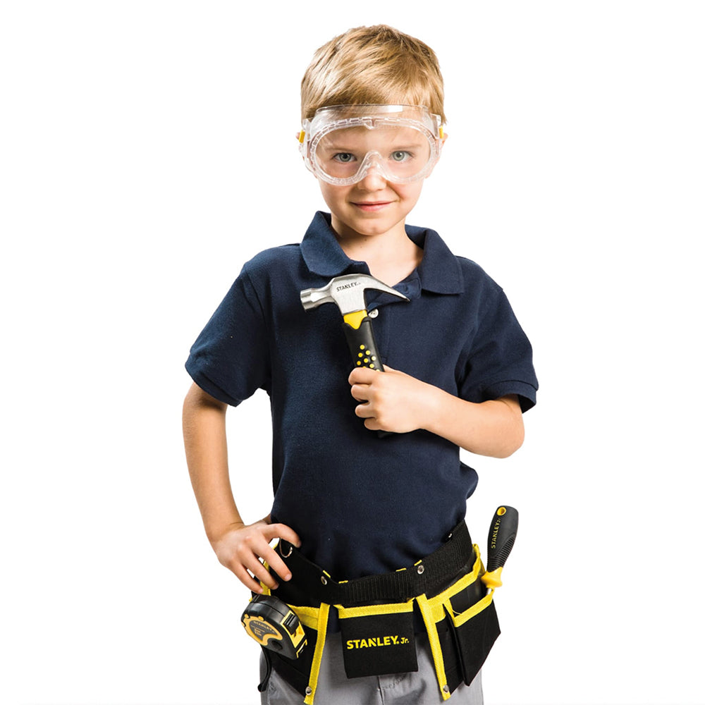 Ensemble d'outils 5 pièces pour enfants avec une ceinture pour outils, lunette de sécurité, gants et outils de construction véritables pour jouer ou faire semblant.
