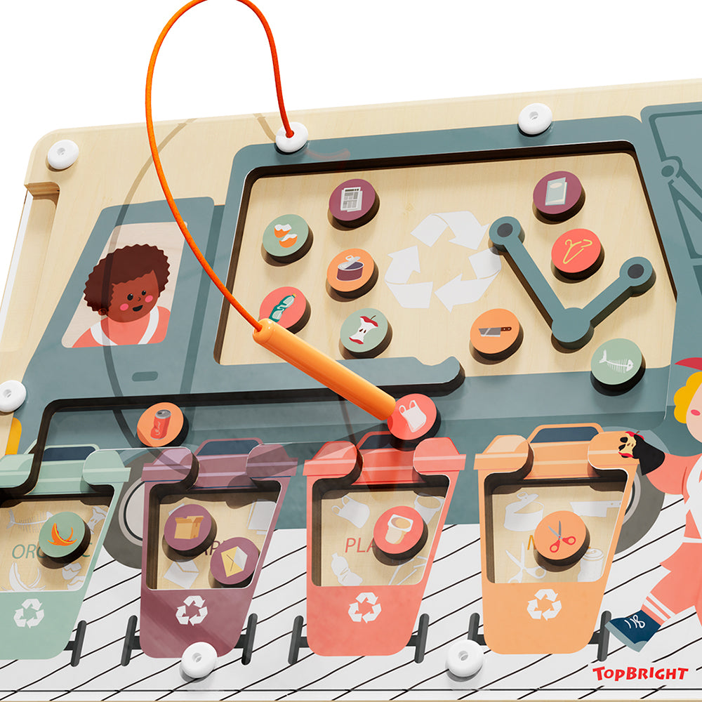 Avec le trieur de déchets magnétique, les enfants commenceront à apprendre les bases du recyclage. Métal, papier, plastique ou déchets organiques - les enfants trient les déchets individuels dans la bonne poubelle avec le stylo magnétique. Ce faisant, ils apprennent le recyclage ainsi que la protection de l’environnement. Le labyrinthe magnétique les encourage également à découvrir les couleurs de manière ludique.