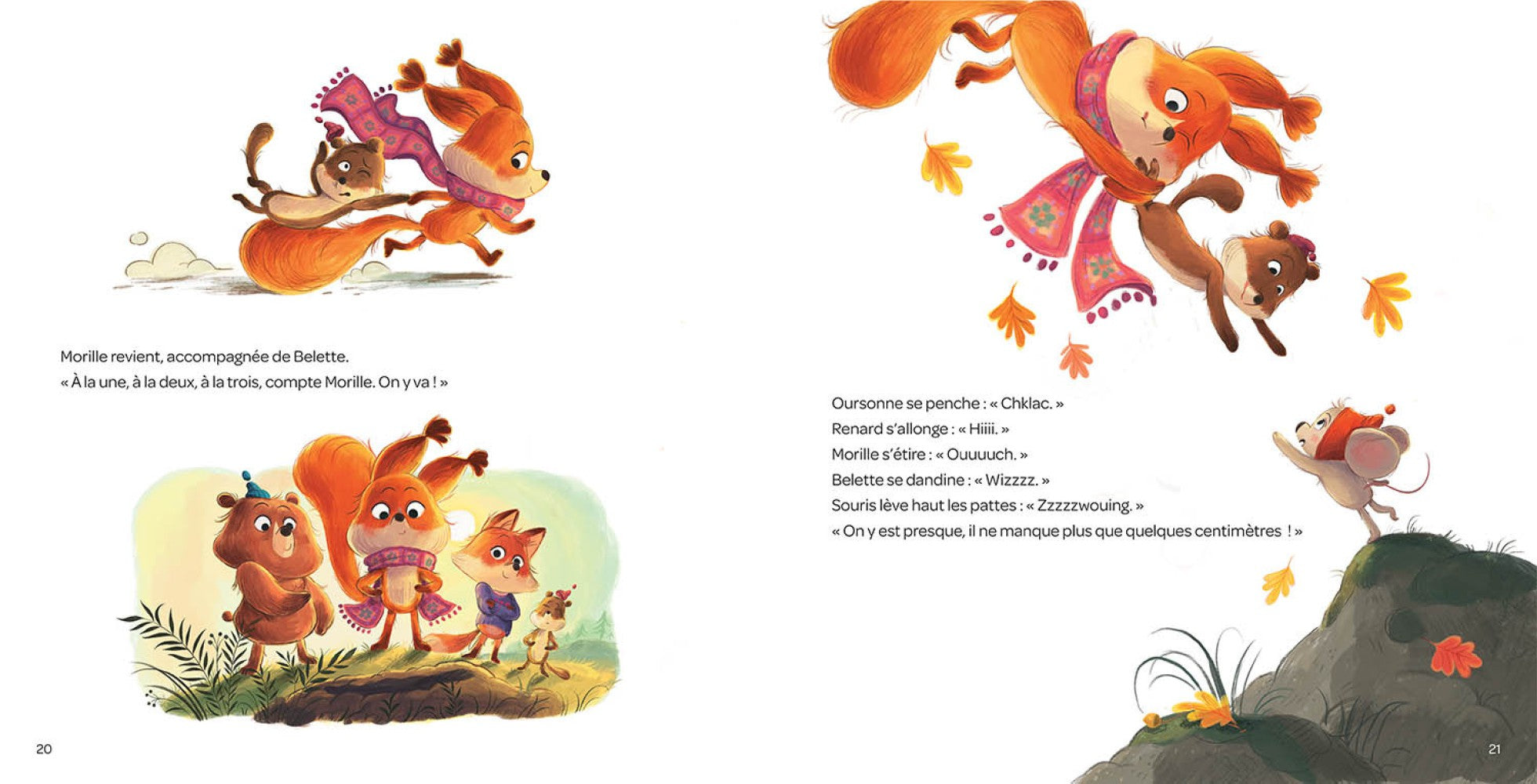 Morille l’écureuil ne quitte jamais son écharpe. Mais un beau jour, son amie Souris tombe dans un trou… Aidée des autres animaux de la forêt, Morille va tenter de la sortir de là. Devra-t-elle se séparer de son porte-bonheur de laine pour sauver son amie ?