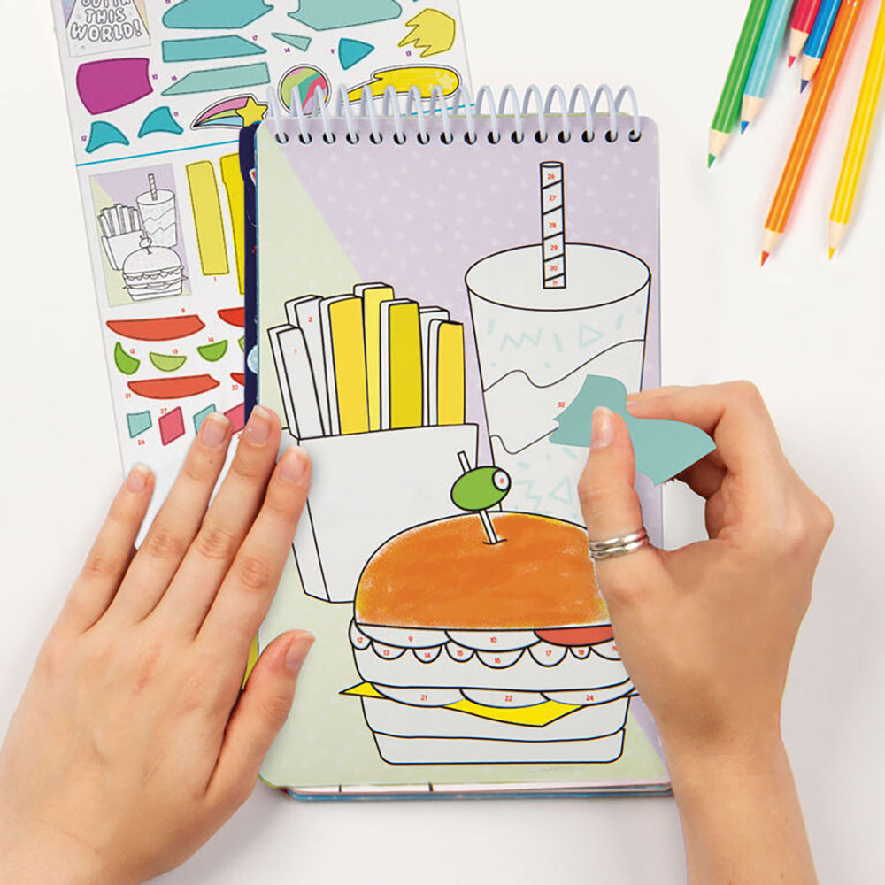 Avec plus de 300 autocollants et 10 affiches à remplir, les enfants passeront du bon temps tout en remplissant les illustrations originales. Toutes les pages reliées en spirale facilitent son transport durant les voyages, les restaurants et les jeux sous la pluie.