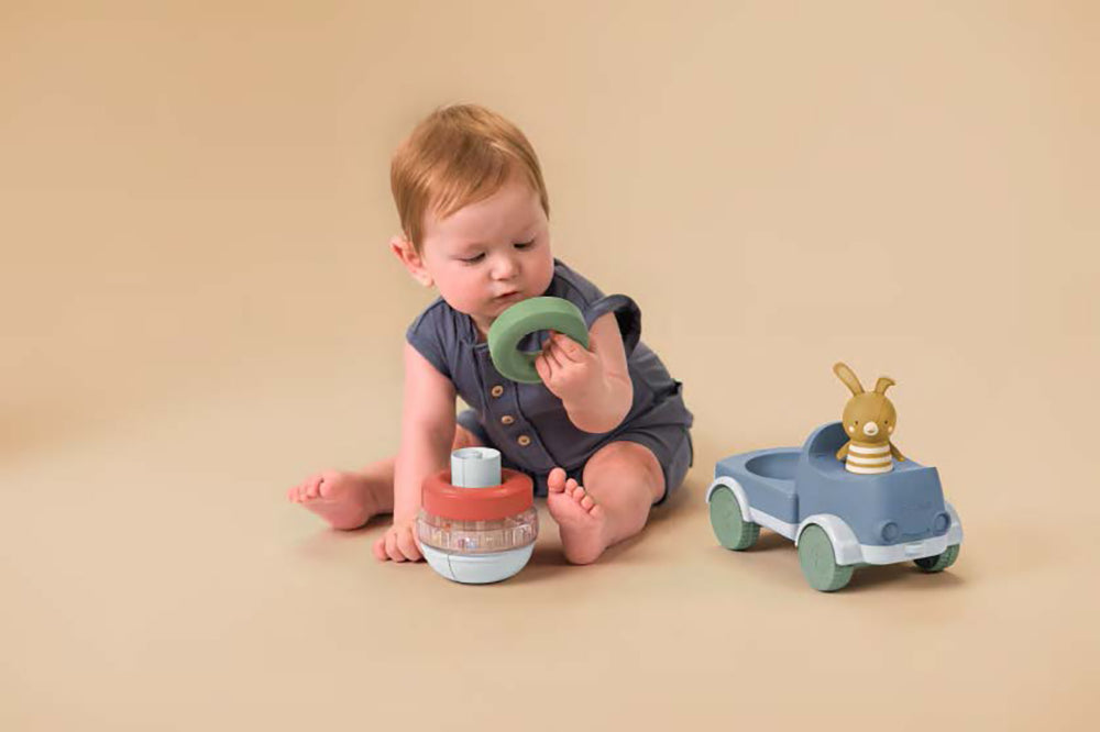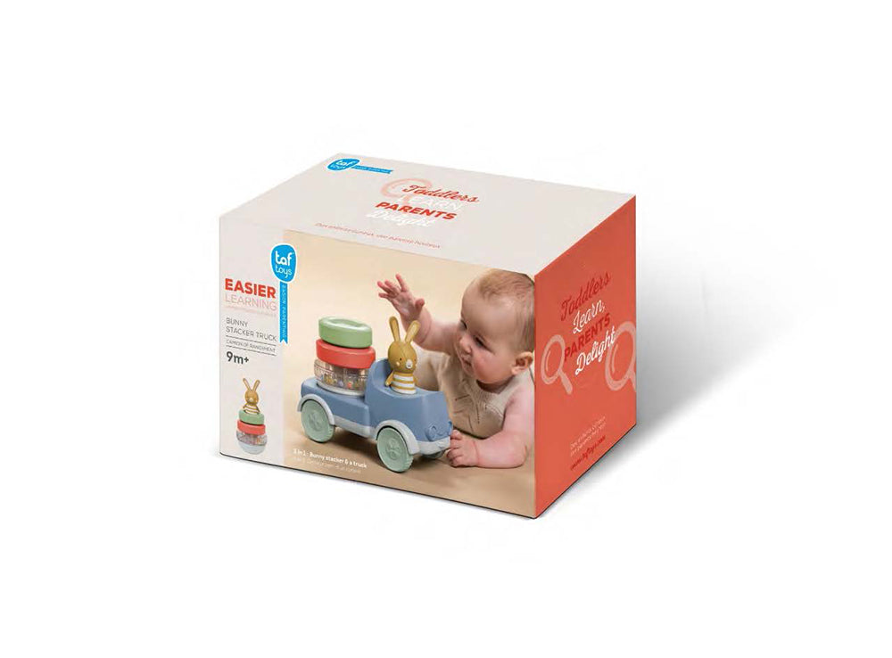 Voici notre magnifique camion à empiler Bunny Stacker, conçu pour captiver et impliquer les bébés tout en stimulant leurs sens. Ce camion offre un divertissement sans fin tout en favorisant le développement de la motricité fine et de la coordination œil-main grâce à l'empilage d'anneaux. De plus, l'empileur tourne avec un charmant bruit de cliquetis lorsque le camion se déplace, ce qui encourage les petits à explorer et à ramper. Les anneaux d'empilage à profil plat du camion sont faciles à saisir pour les petites mains, la base d'empilage est amovible et le design coloré favorise le développement de la motricité globale et la marche à quatre pattes.