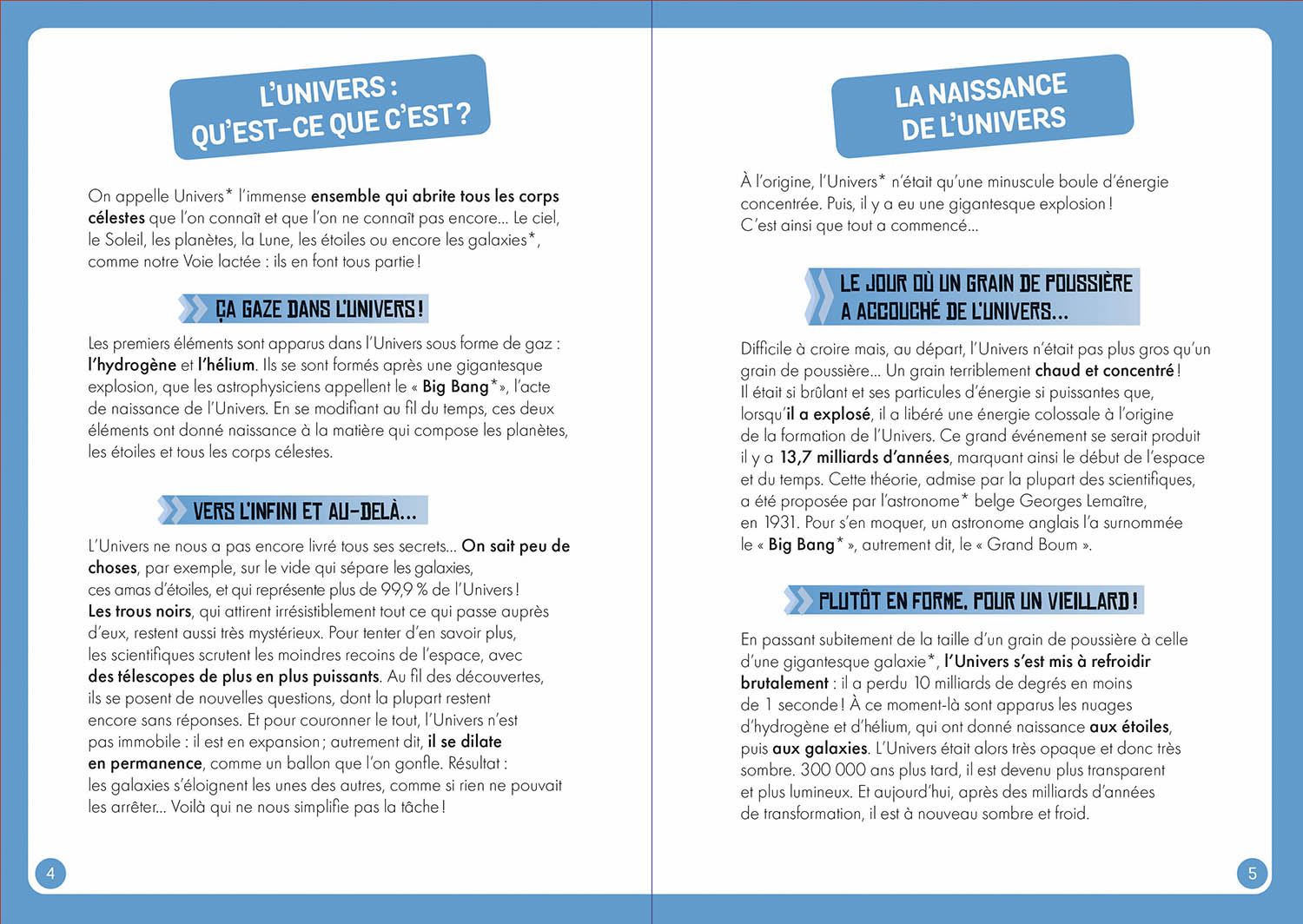 La boîte comprend un livre documentaire de 64 pages pour tout savoir sur l'espace, ainsi que + de 30 aimants à replacer sur un grand plateau aimanté.