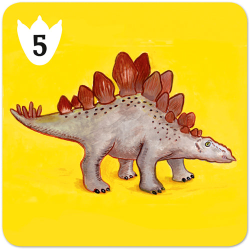 A memory game in the form of a battle. Instead of holding the cards in your hands, they are placed face down on the table. A few seconds to memorize their place and let's go for the dinosaur fight! 1 2 3: each player turns over one of their cards and the highest card wins the trick. Players can choose the card to use and win the trick but to do this they must remember the place of their dinosaurs! The player who has won the most cards wins the game!