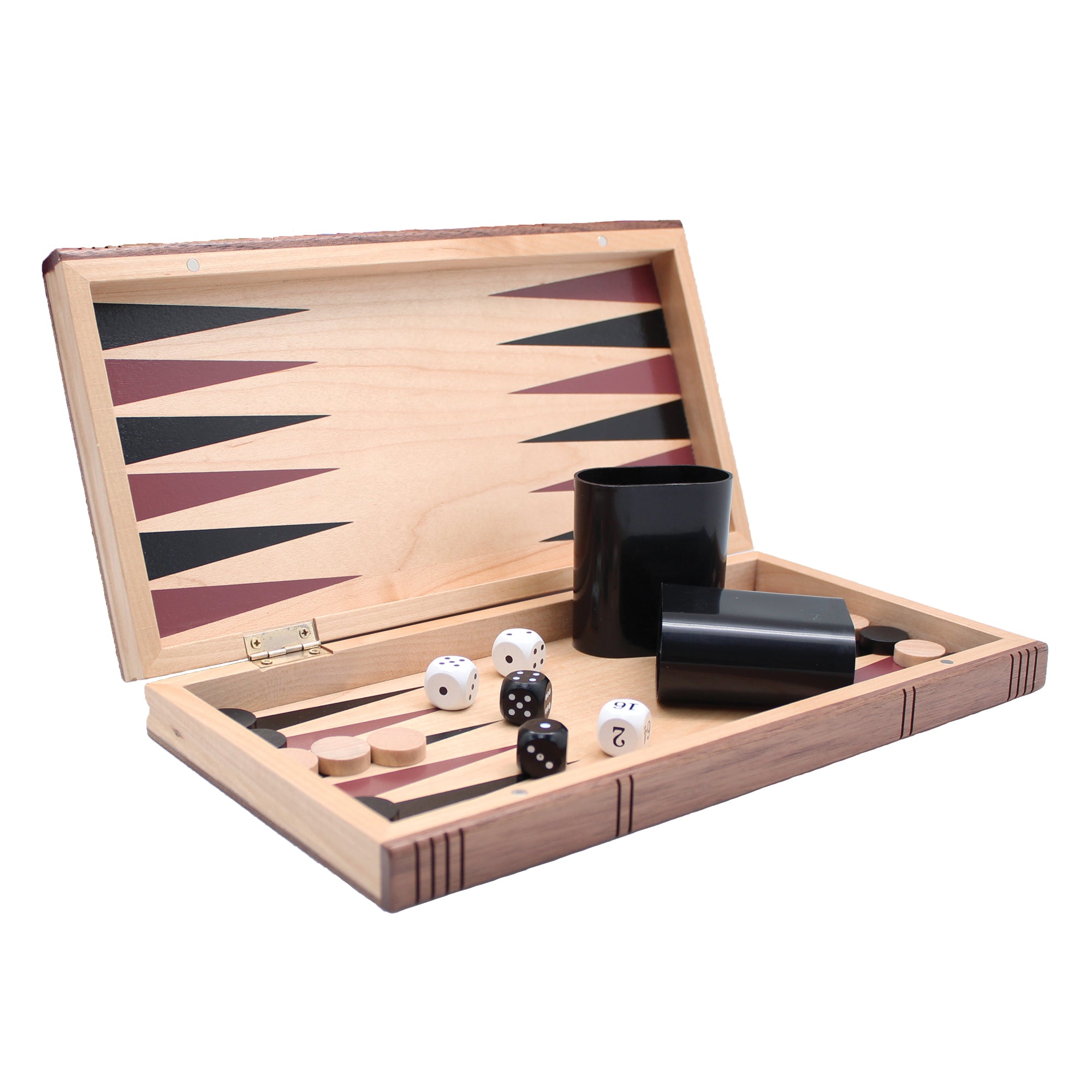 Find three classics in this 3-in-1 set! Carry your game with you thanks to the foldable case. Play chess and checkers on the chessboard, then flip the case to play backgammon.
