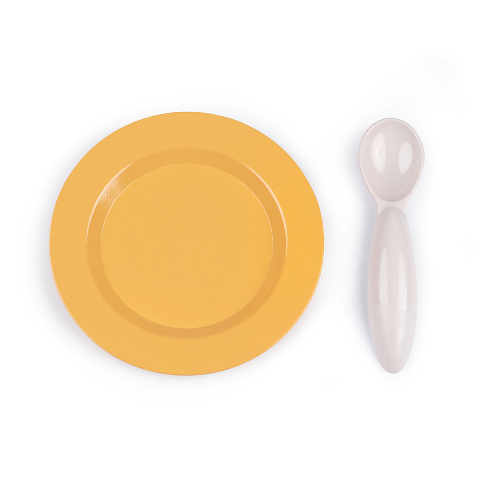 Imite les gestes de papa et maman et installe ton poupon sur la chaise. La cuillère et l’assiette te permettront de nourrir bébé sans en mettre partout!