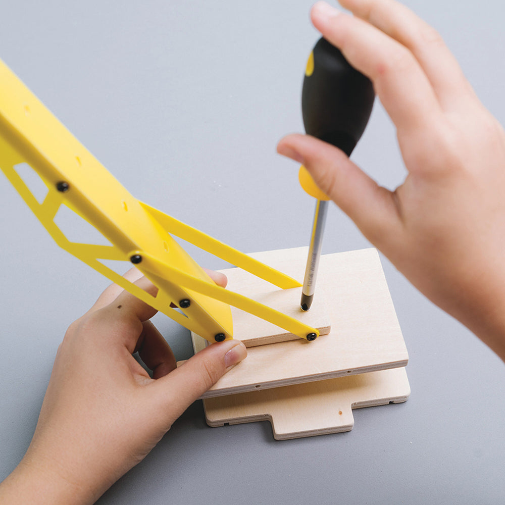 Includes: pre-cut wood and plastic pieces, wheels, screws and nails, sandpaper, 4 paints, 1 paintbrush, 1 sticker sheet, instructions