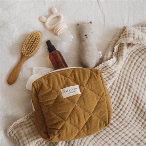 The small quilted pouch that matches the diaper bag and allows you to carry all your little essentials for baby or parents.