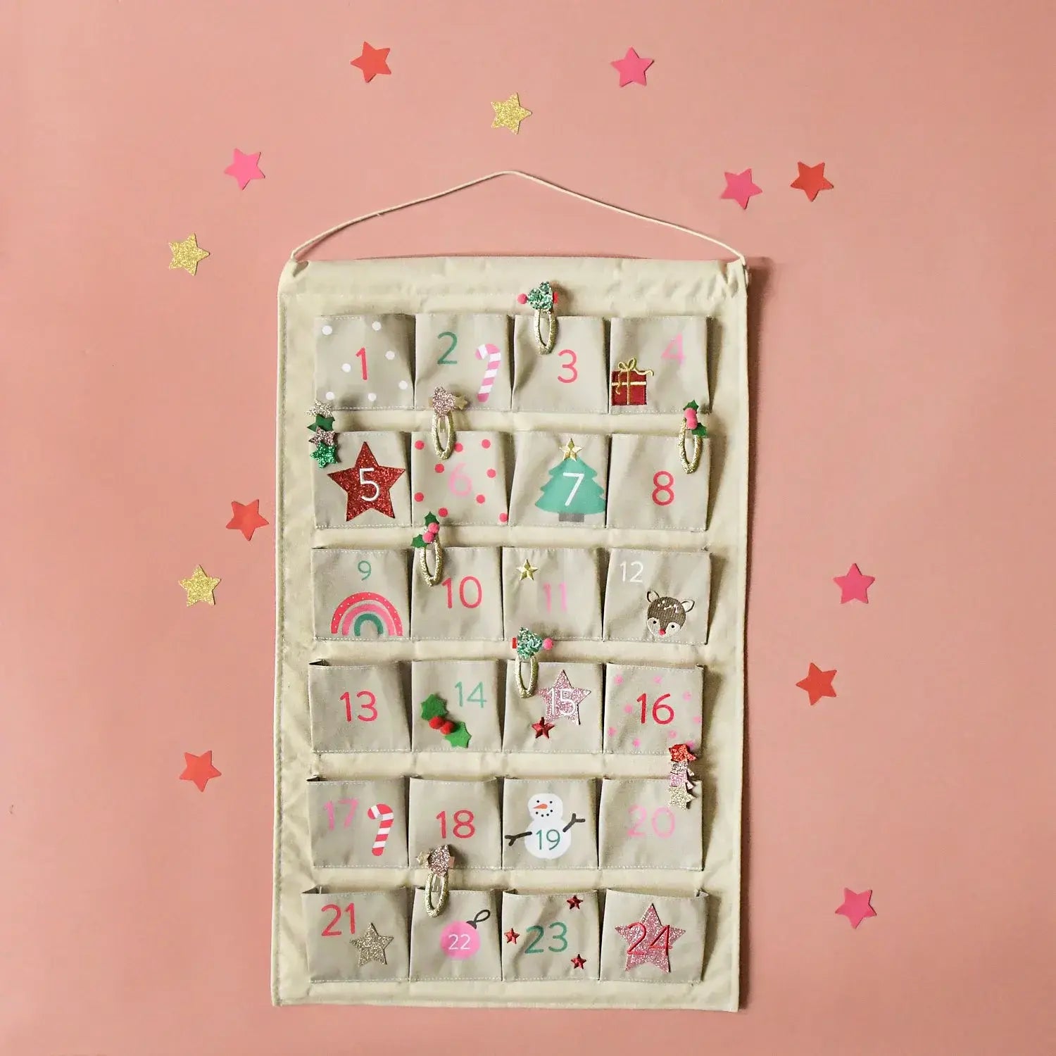 Ce calendrier de l'Avent réutilisable allie praticité et charme avec ses 24 grandes pochettes parfaites pour y glisser bonbons, friandises et les adorables pinces ou petites figurines Rockahula. Offrez une expérience festive unique, où chaque jour révèle une surprise à partager et à savourer, tout en adoptant une démarche durable année après année.