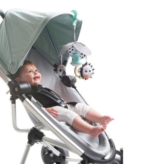 The Magical Tales™ Pack and Go Mini Mobile is a foldable and adorable wind chime mobile with soft sound that can be taken anywhere with baby. The unique and stylish black and white design is ideal for babies' eyesight development, making this charming mini mobile perfect for babies from day one. The mobile has 4 activities, including a bell-shaped wind chime and an owl-shaped rattle, which stimulate cognition, senses and fine motor skills. The toy features Magical Tales Tiny Pioneers, cute characters who accompany babies on their travels, reassuring them with familiarity and promoting emotional intelligence. Featuring a universal mounting clip, the mobile can be easily attached and detached from strollers, cradles, baby carriers and more. The mobile is part of the Magical Tales collection by Tiny Love, in black and white. Development has never had so much style!