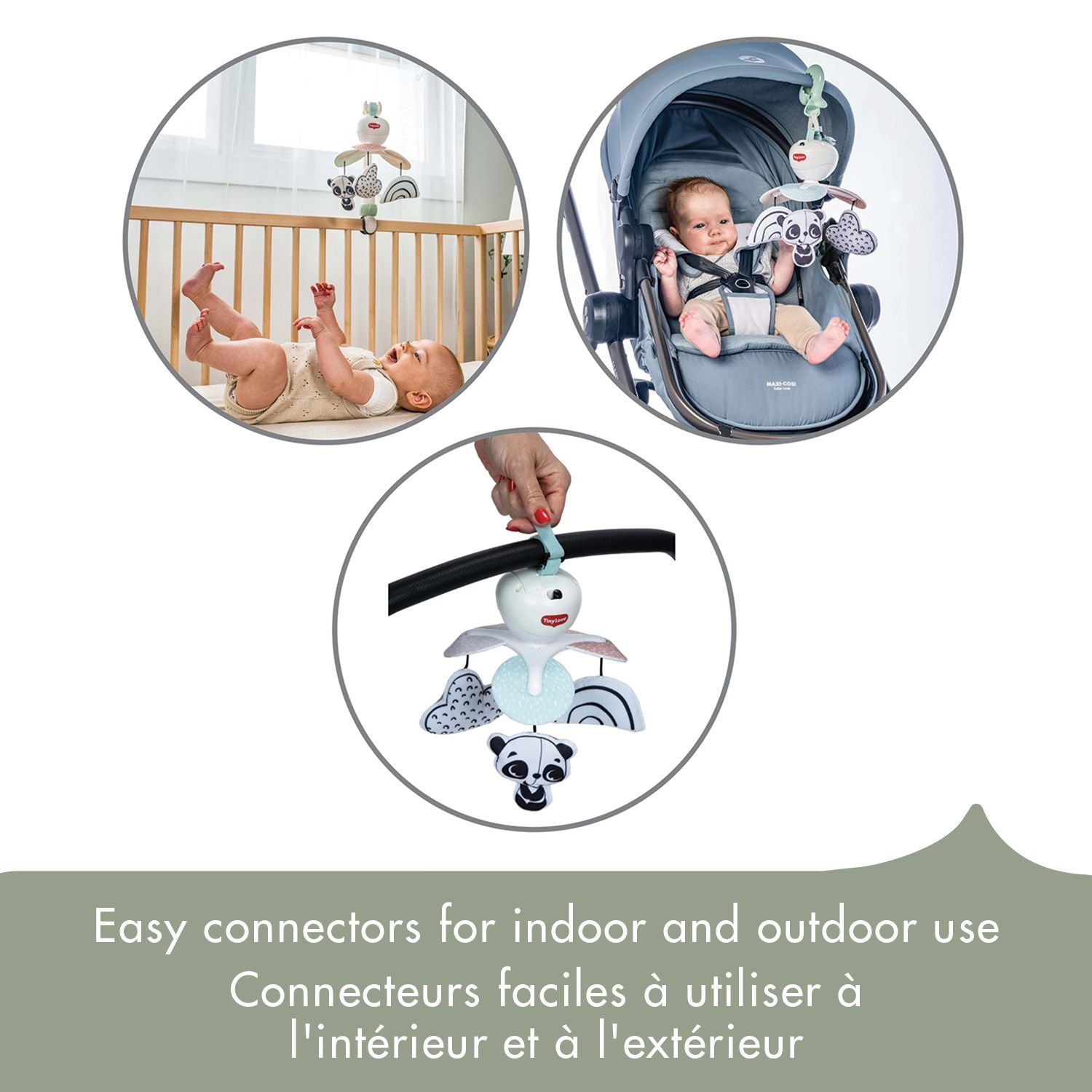 The Tiny Love Black & White Décor 3-in-1 takeaway mobile is a contrasting and attractive mobile that accompanies your baby everywhere. From birth, babies will appreciate the feeling of security and continuity they will experience by taking it with them everywhere.