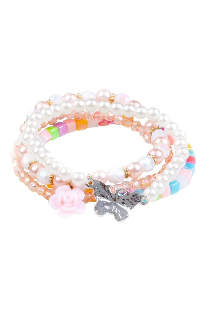 Butterfly bracelet set with beads, 4 pcs