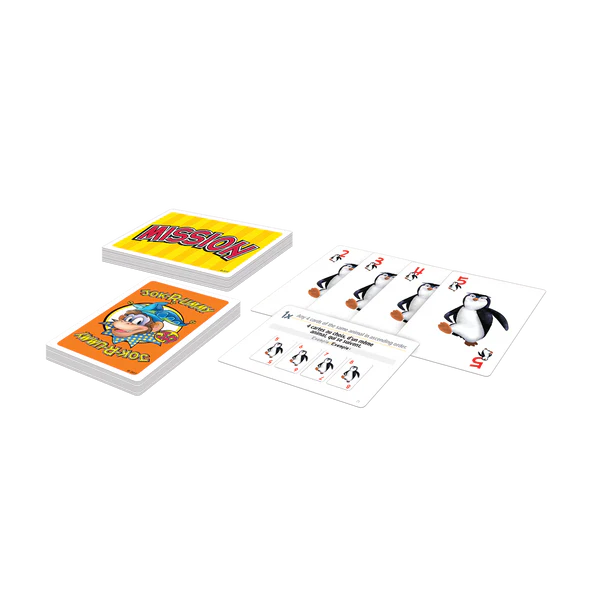 Kids (and adults) will enjoy playing this adaptation of the popular and classic Jok-R-ummy® game. Team up with Parrot, Penguin, Tiger and Zebra to complete your missions. Use the Monkey cards wisely to achieve your goals and be careful which cards you play, because they could well benefit your opponents… Be the first to complete your 4 missions and you will be the big winner of the Jok-R-ummy jr® adventure.